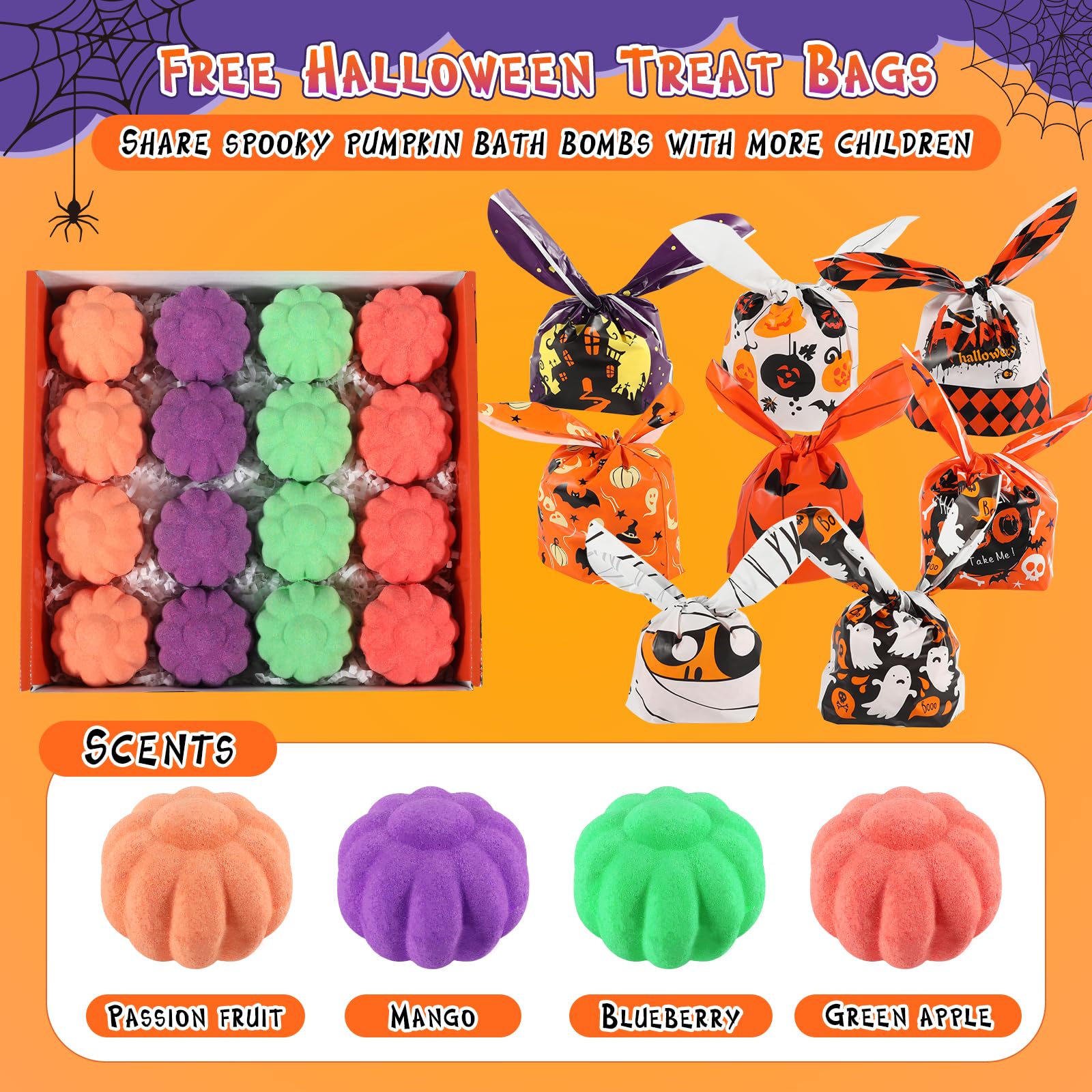 Halloween Gifts for Kids - 16pcs Halloween Bath Bombs for Kids with Toys Inside Halloween Party Favors Goodie Bag Fillers Natural Organic Bubble Bath with Spooky Pumpkin Bath Bombs