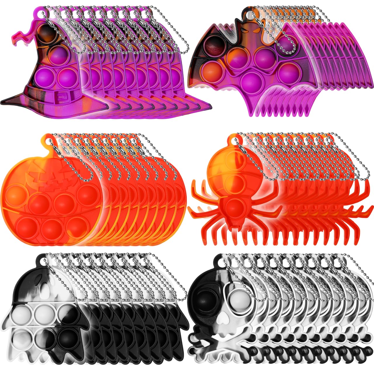 Halloween Mini Push Pop Bubble Fidget Toy, Keychain Bubble Pop Desk Toy, Fidget Keychain Relieve Anxiety Stress Pop Fidget Toy (60pcs)