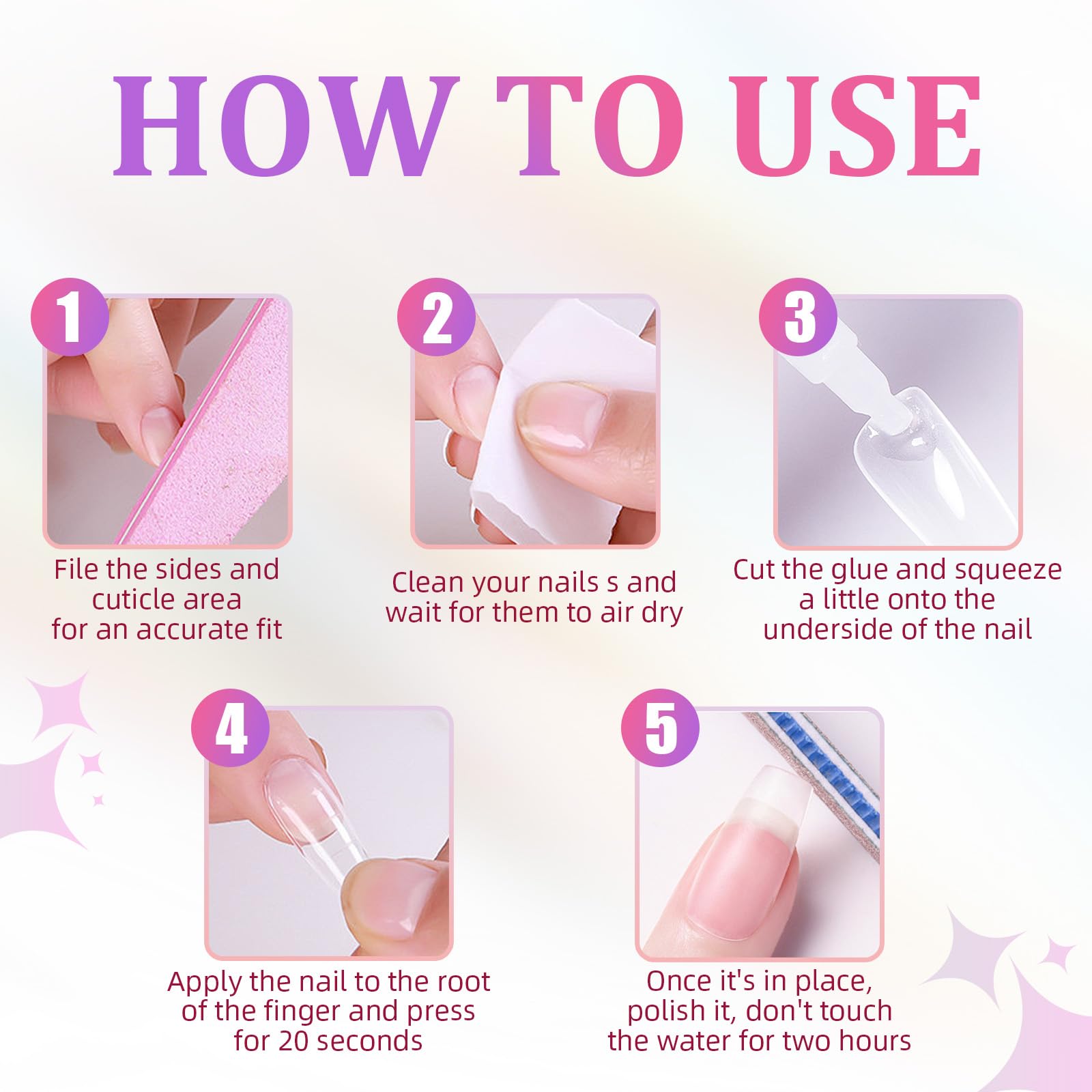 • Simple application process: simply choose the right nail size, polish your natural nails, apply the jelly gel, and press on fake nails for about 20 seconds. For a longer-lasting manicure, you can also choose to use the included nail glue.