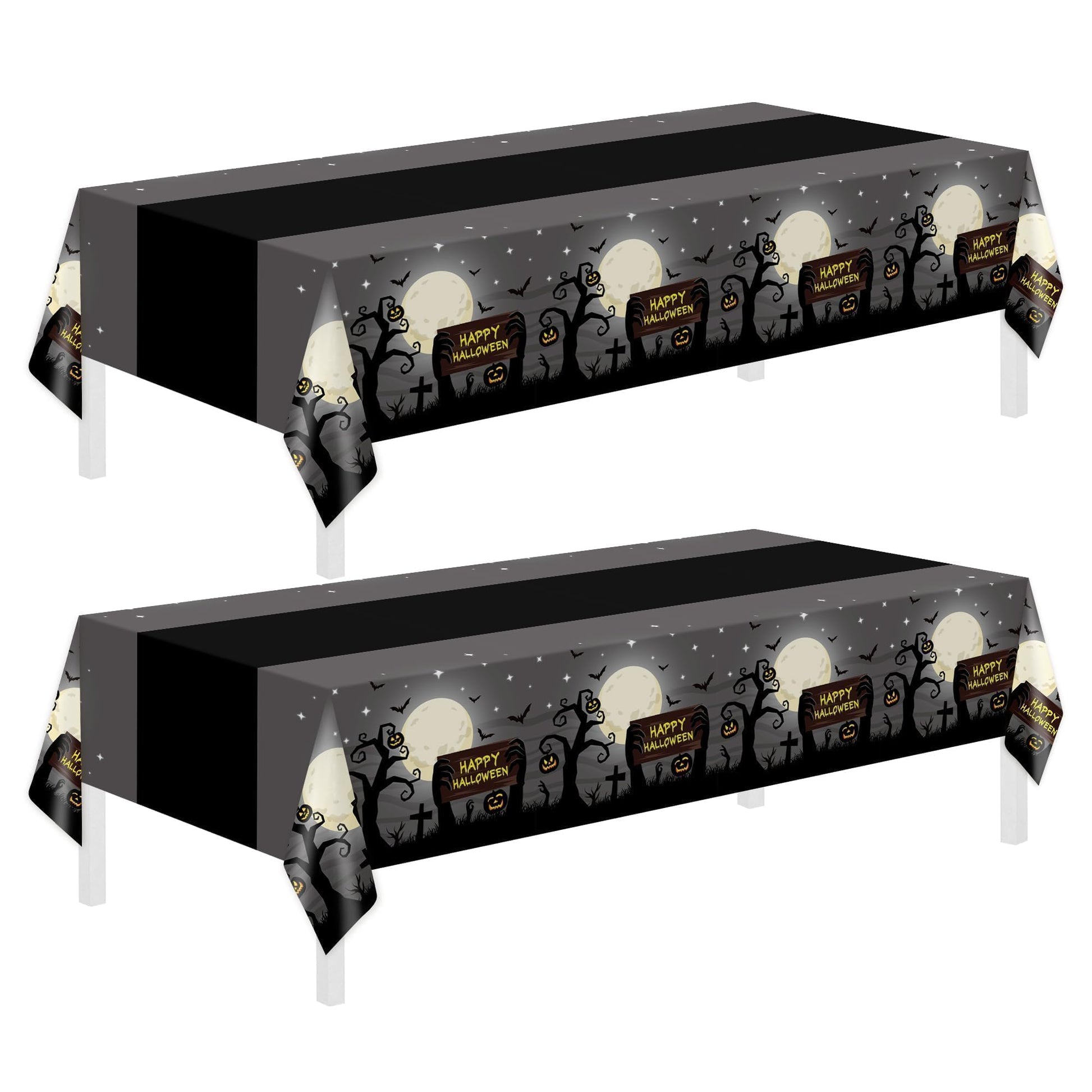 Halloween Tablecloth,2 Pack Disposable Plastic Tablecloth 54"x108" Halloween Decorations,Gray Table Cloth for Birthday Decors,Moon Plastic Table Cover,Party Supplies for Indoor or Outside,Home,Dinner