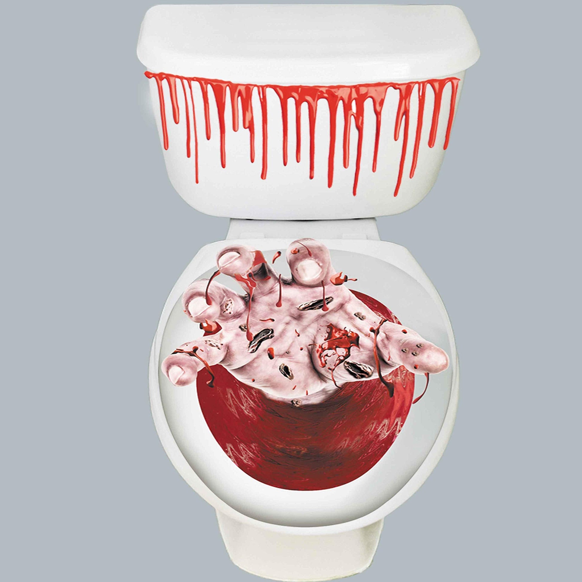 Halloween Toilet Seat Cover 3D Horror Morphing Decal for Halloween Theme Party Home Decor (Zombie Hand&Dollar&Blood)