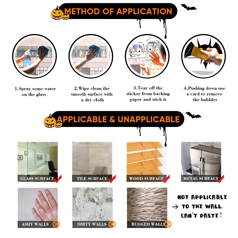 • 【Widely Use】Halloween window decals are great for any smooth surface, such as glass door, shop window pane, ceramic tiles in kitchen or bathroom, home appliance, dorm or retail store, coffee House, restaurant.