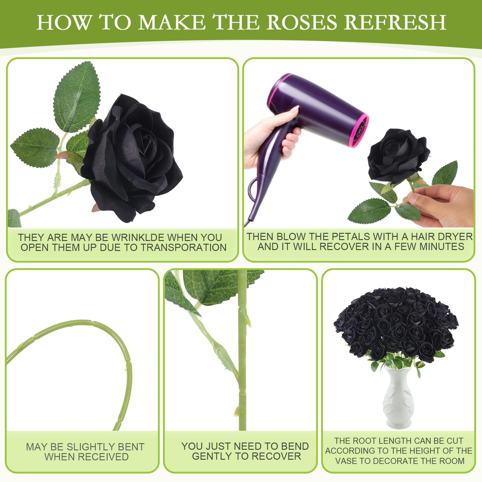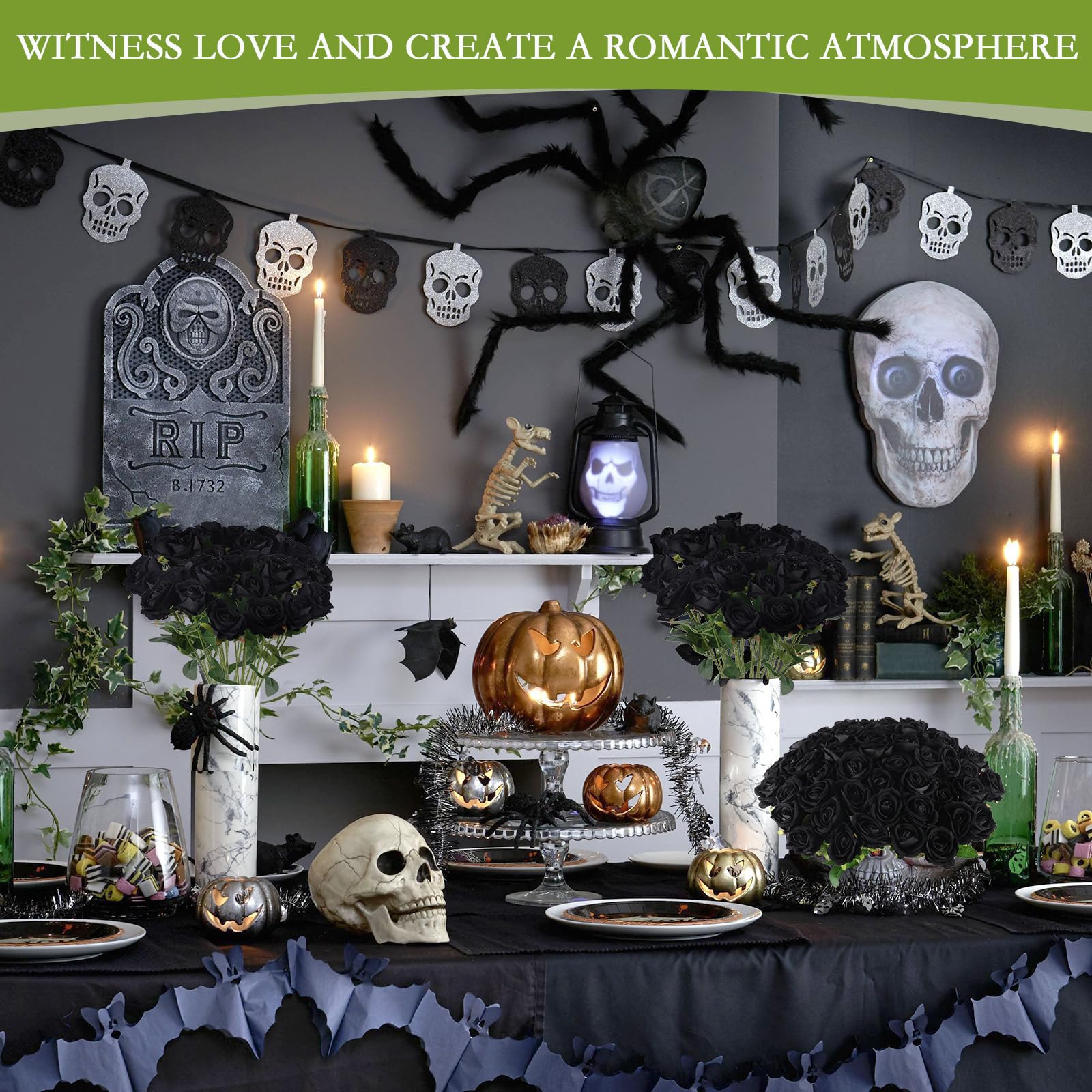 Hananona 50 Pcs Artificial Roses in Bulk, Fake Velvet Silk Roses Realistic Black Roses for Wedding Centerpieces Flower Arrangement Home Decor (50, Black)