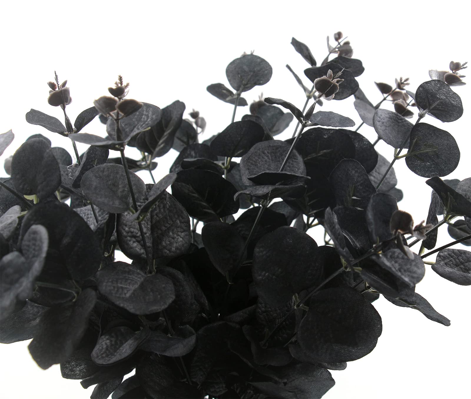Hananona 6 Pcs Artificial Black Eucalyptus Stems, 14" Eucalyptus Leaves Branches Bouquet for Flower Arrangement DIY, Black Silk Flowers for Home Halloween Farmhouse Decor (Black, 6)