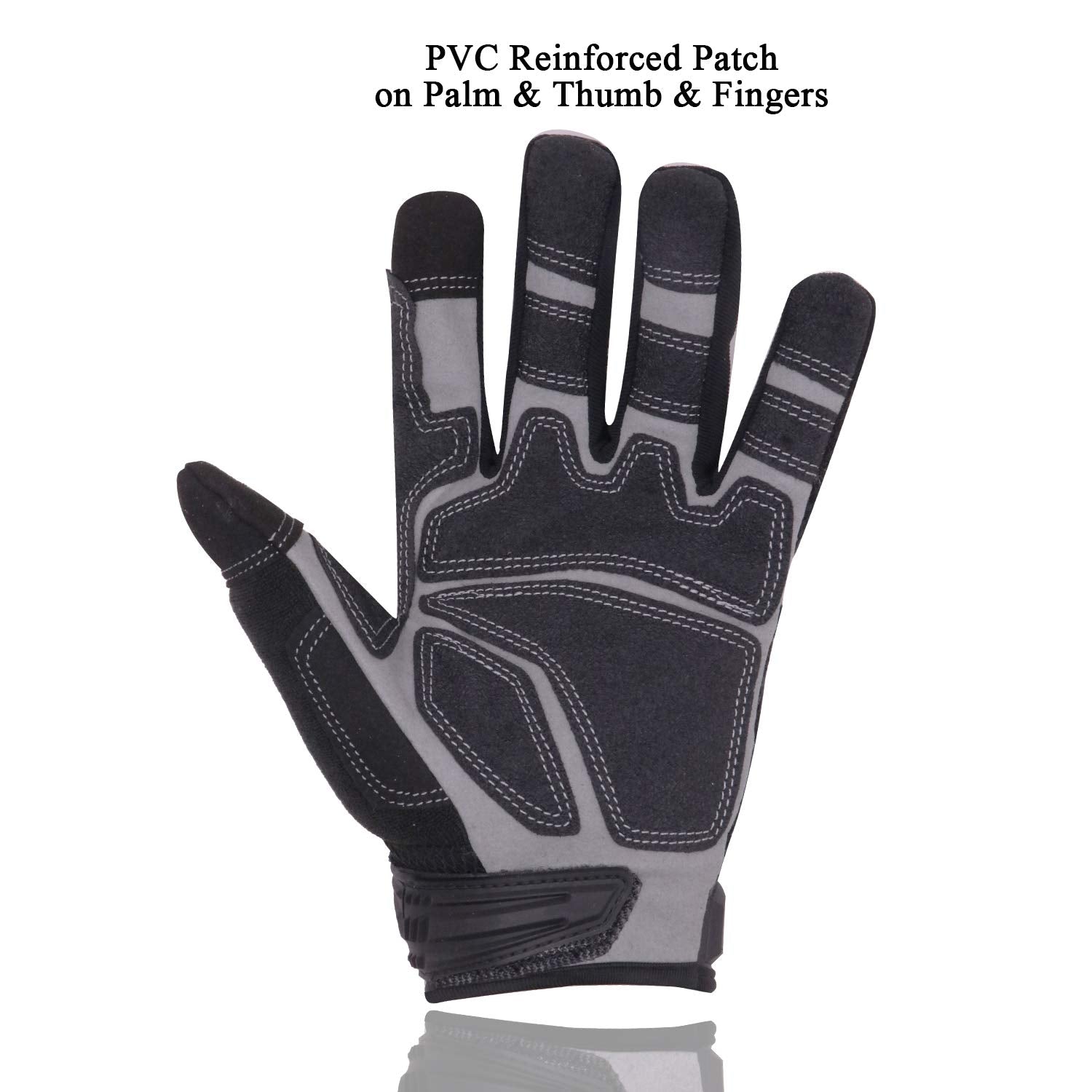 • Reinforced Anti Abrasion & Anti Slip Work Gloves: Synthetic leather with PVC reinforced palm patch, thumb and fingertips for extra durability and protection.