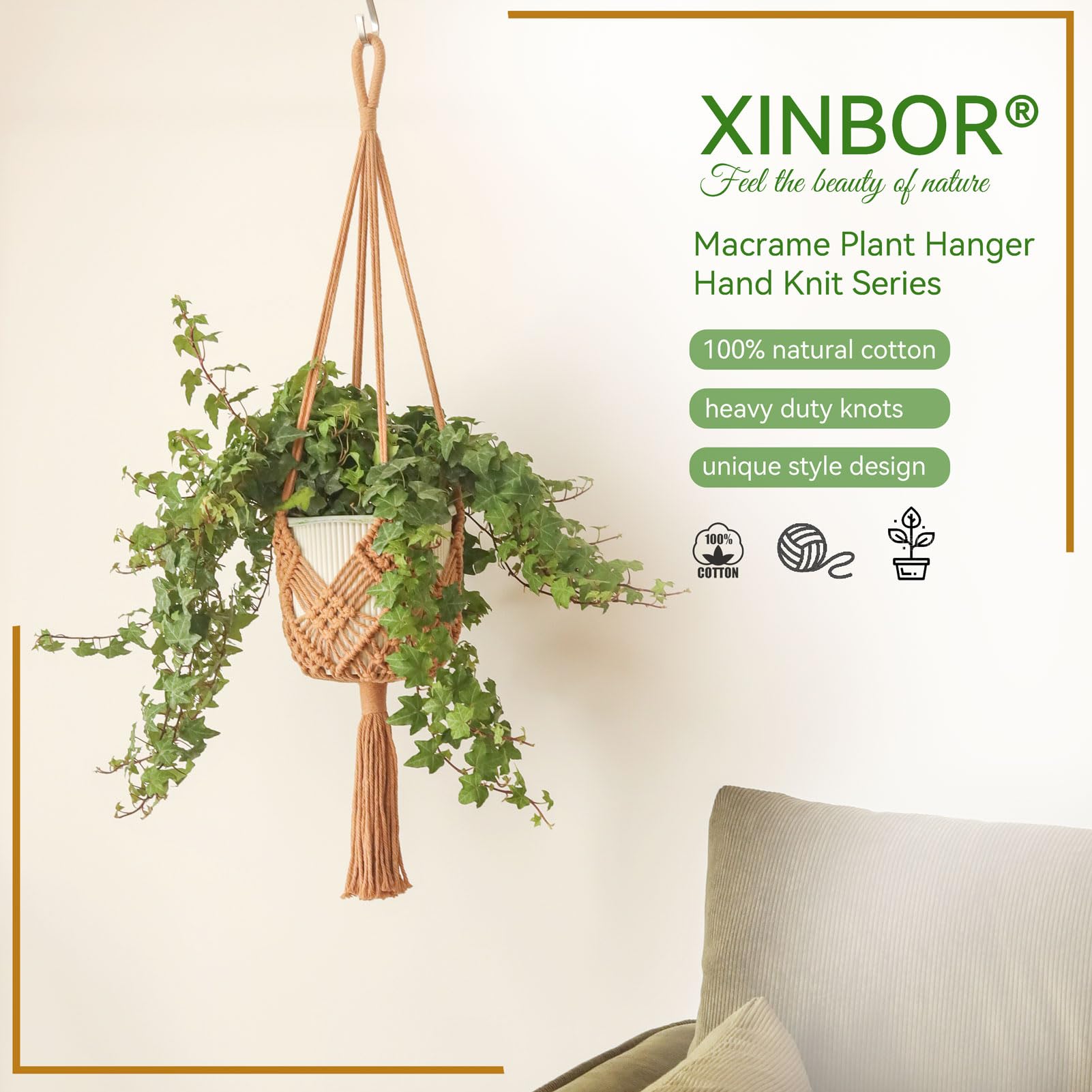 • VERY STRONG - Each crochet plant hangers is hand-woven by artisans, warm color, three-dimensional texture, very strong and durable, multi-strand weaving, not easy to pull off.Indoor plant hangers made of 100% cotton rope, no lint, no odor. Please feel free to use. Please do not machine wash.