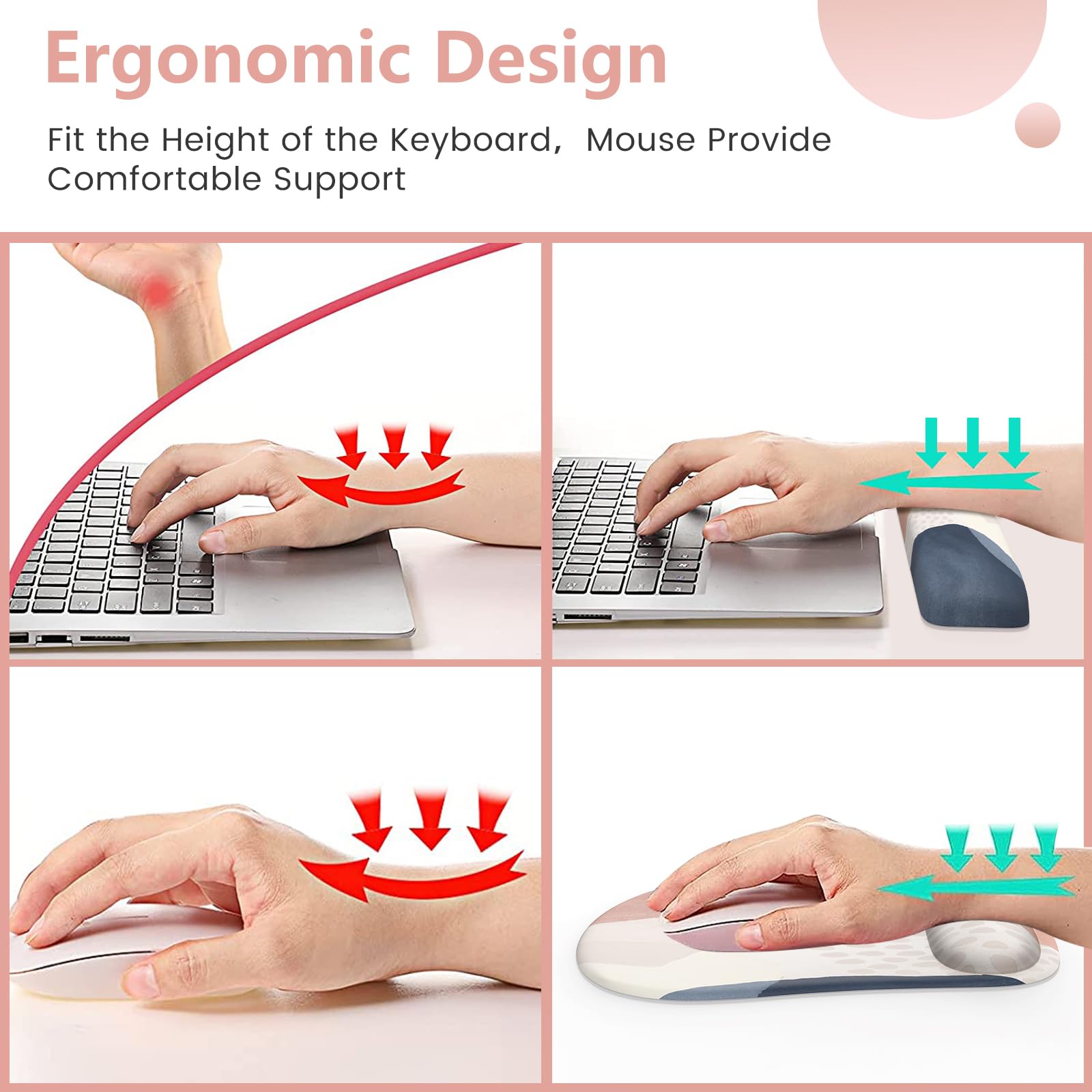 HAOCOO Ergonomic Mouse Pad and Keyboard Wrist Rest Set, Gel Wrist Rest for Computer, Gaming Mouse Pad for Office Home, Pink Boho
