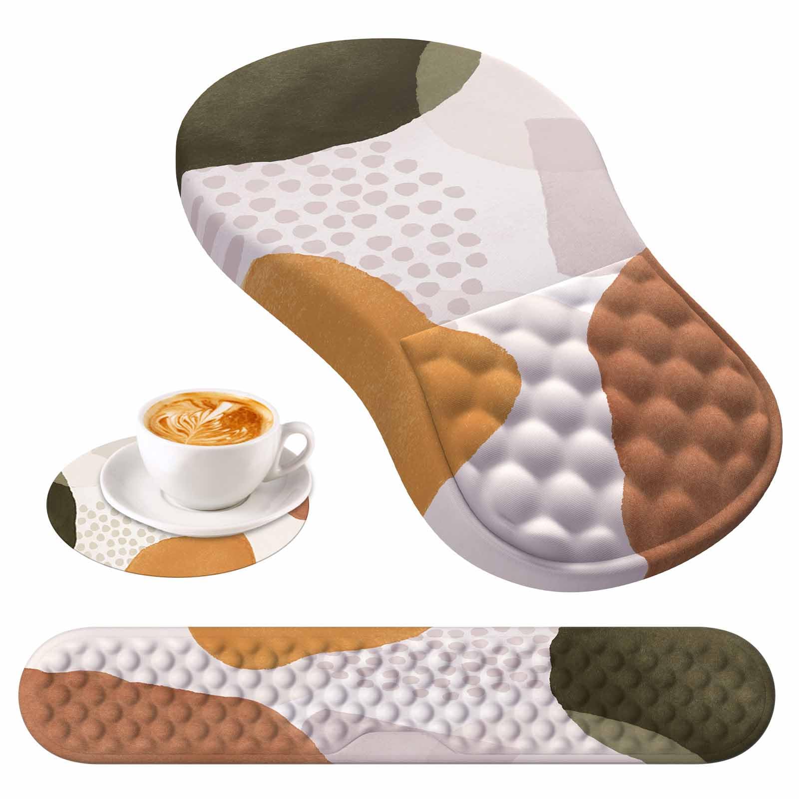 HAOCOO Ergonomic Mouse Pad with Wrist Rest and Keyboard Wrist Rest, 3 PCS Computer Carpal Tunnel Mouse Pads for Desk with Coaster Set, Memory Foam Keyboard Wrist Support for Laptop Office, Boho Beige
