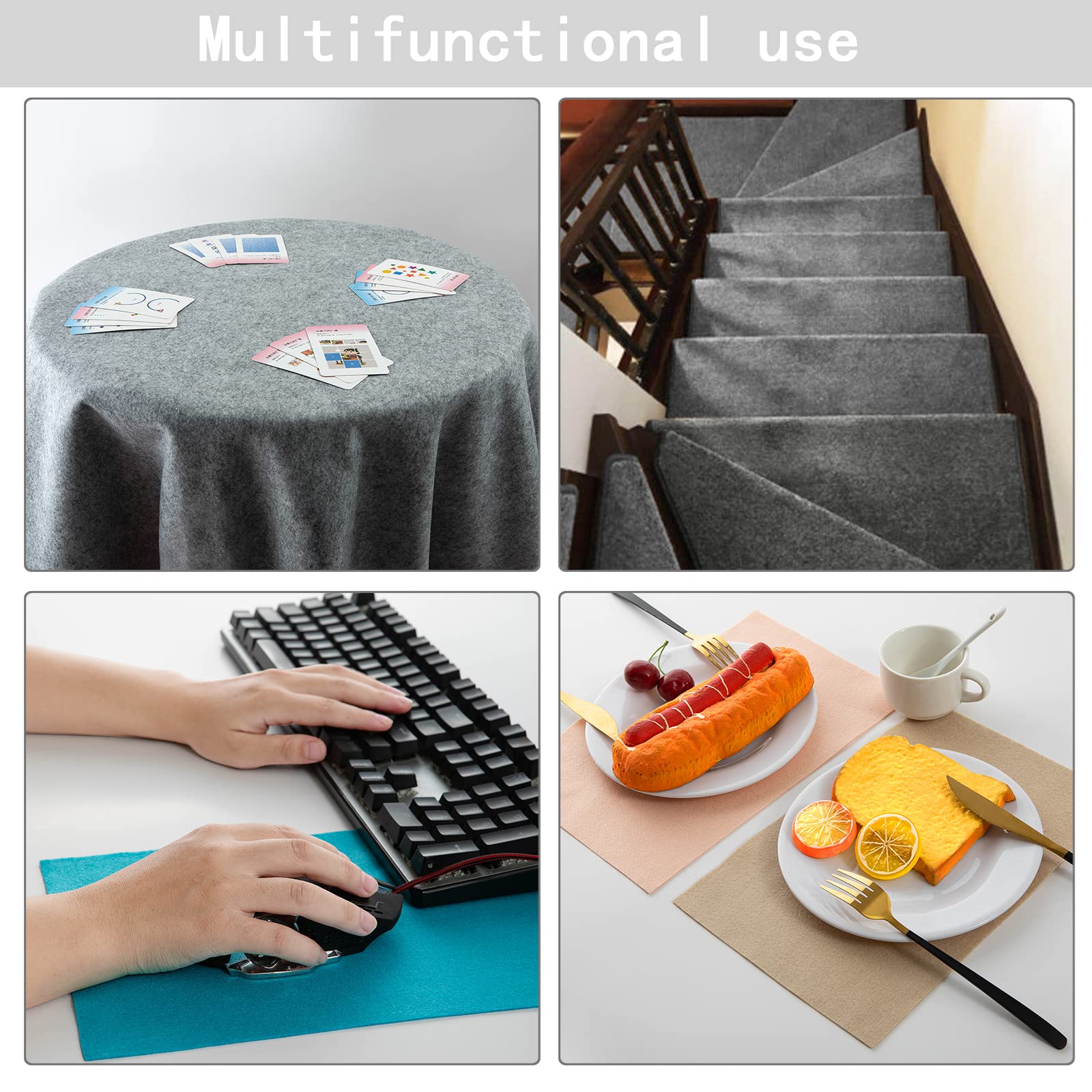 Details: High - quality Soft Felt Fabric - Made of acrylic, this fabric has a soft and smooth handfeel, is not prone to fading, features fine workmanship, and has smooth edges, bringing you a satisfying experience.Suitable Size for You - Square felt fabric sold by the yard. It has a width of 72 inches and a thickness of 1.5mm. Its easy - to - cut, - fold, and - sew properties make it a breeze to work with.