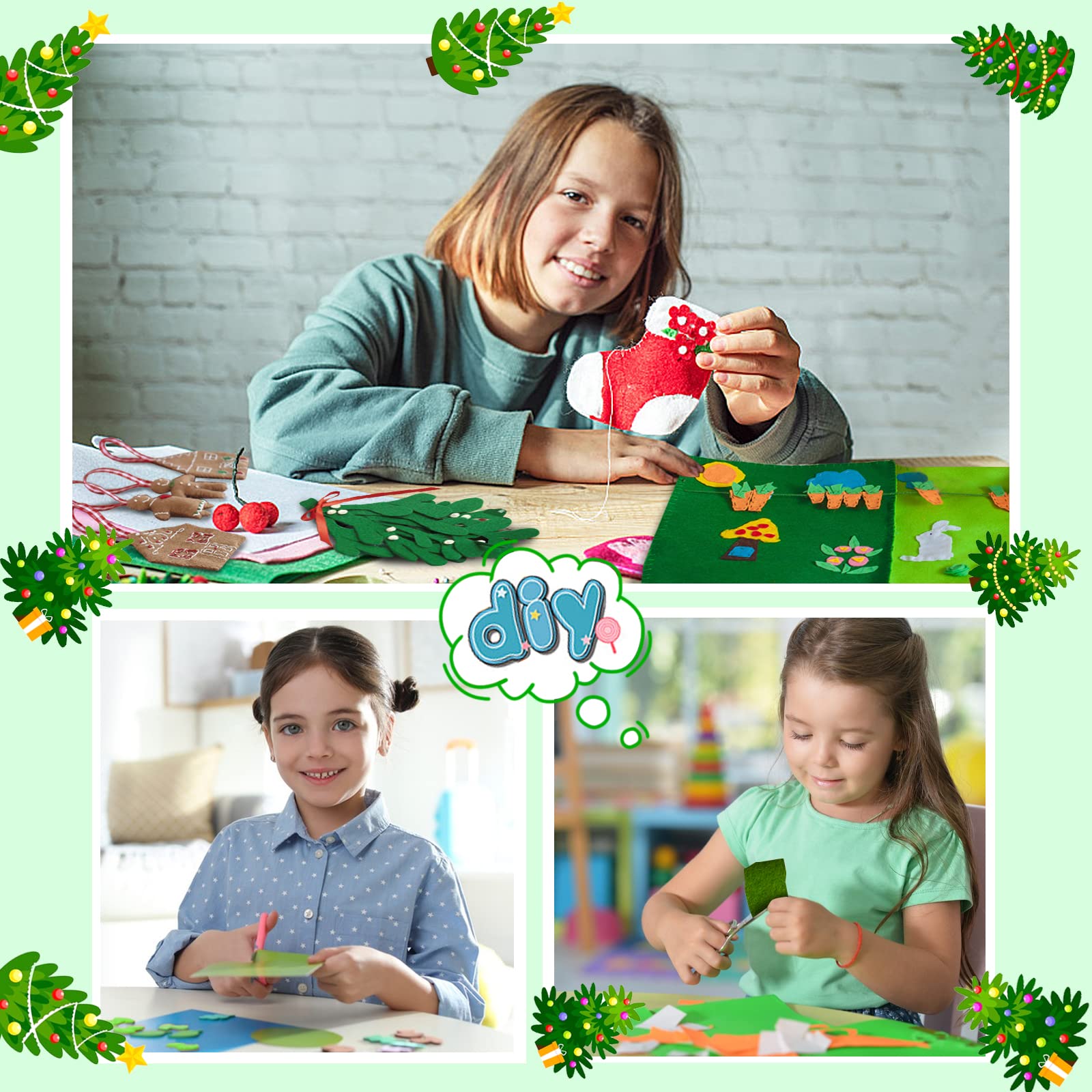 • 【Versatile Felt Creative Craft】These soft felt sheets can be used more broadly than you imagine. It is a perfect DIY felt idea, can be applied to make handicrafts and decorations, great for making Christmas ornaments to create a Christmas atmosphere, perfect for creative craft projects, decorations, quiet books, and more!