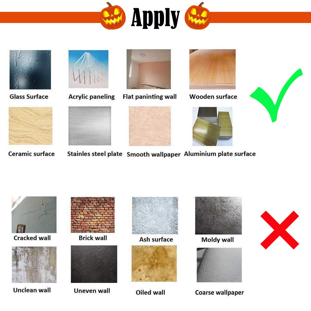 • LARGE WALL DECALS: Total 6 sheets and 1 piece instruction paper, put them together whole sized 41.3'' x 22'', Actully DIY based on your own ideas, you can arrange these Hallowen decals in different locations with certain distances, so that these decals can be sticked to the whole wall or window, maybe double or triple of the original size.