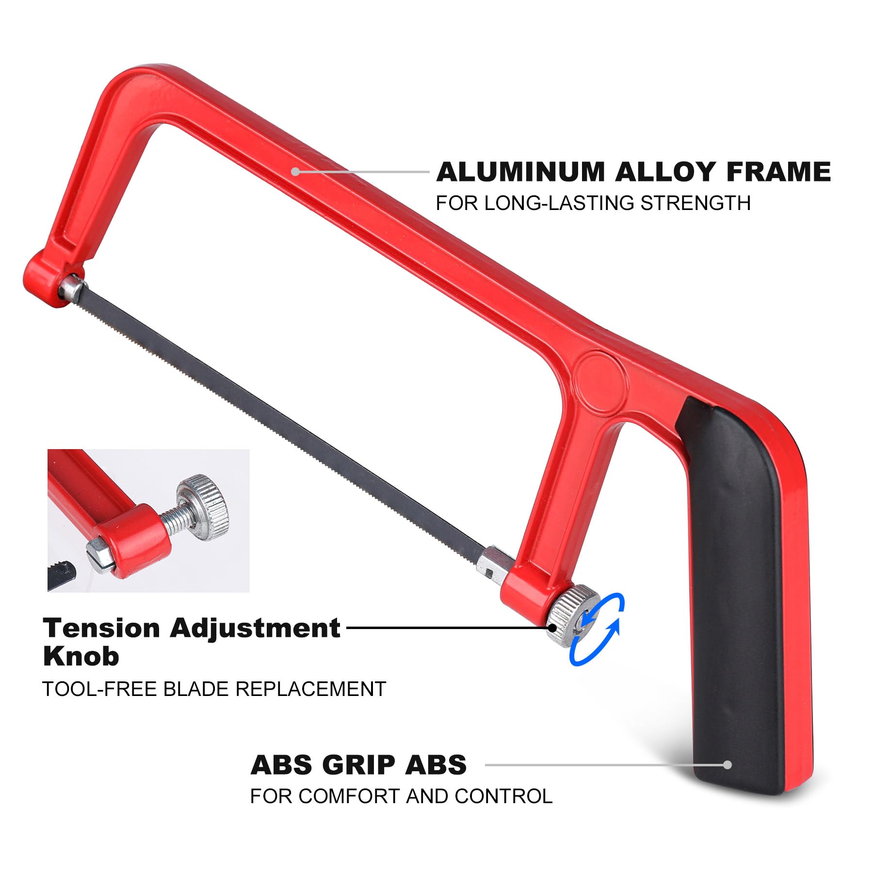• 【Adjustable Blade Angles & Ergonomic Grip】The hacksaw allows six blade angle settings and easy tension adjustment. The ABS grip and non-slip PVC handle offer a firm and comfortable hold, minimizing fatigue