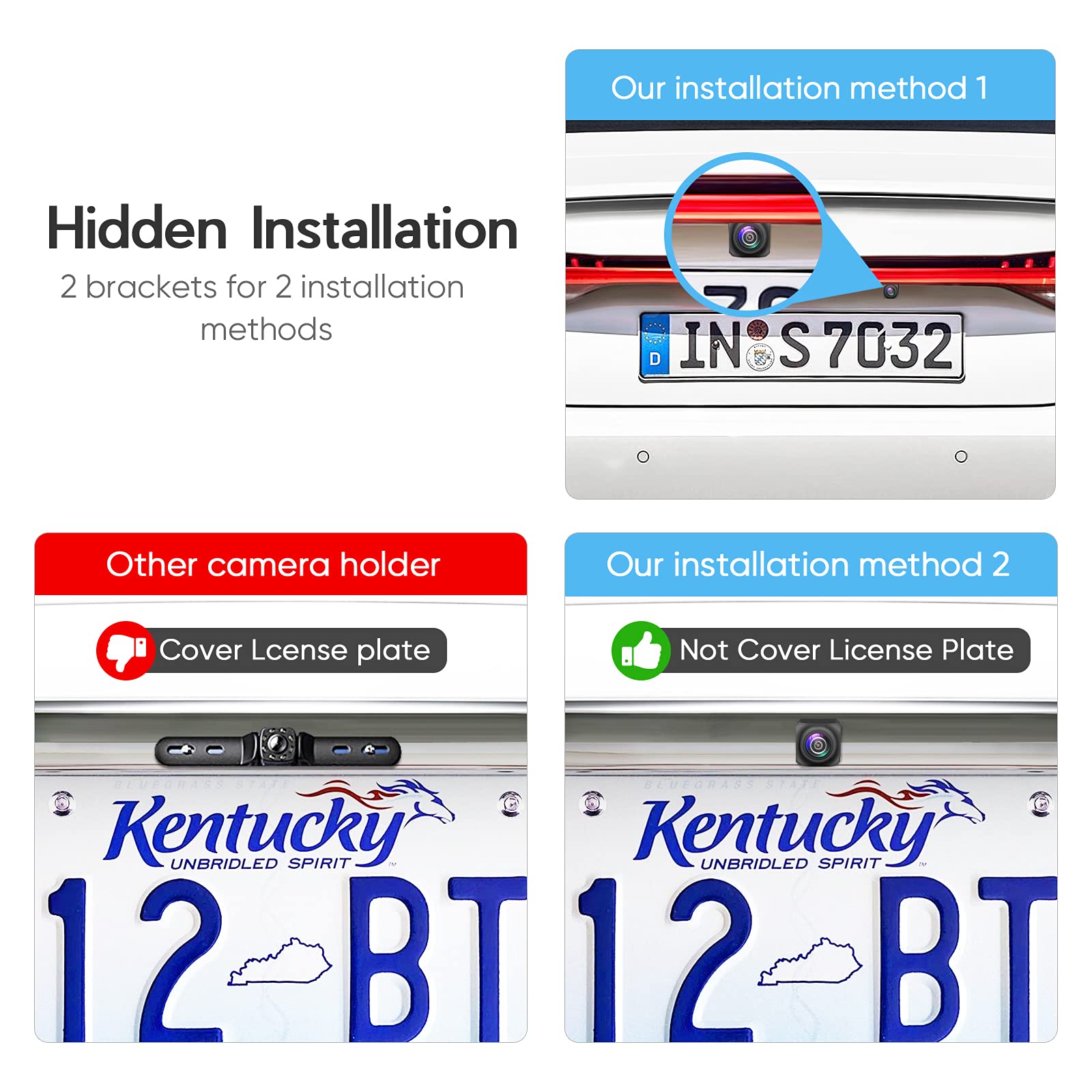 • 【Three Years After-sales Support】Each of our license plate backup cameras has been tested, any question after receiving this rear view camera, contact our Customer Care according to your user manual, and we will respond fast. 30 days refund and 36 months replacement, we never let you has any loss, please order it with confidence!