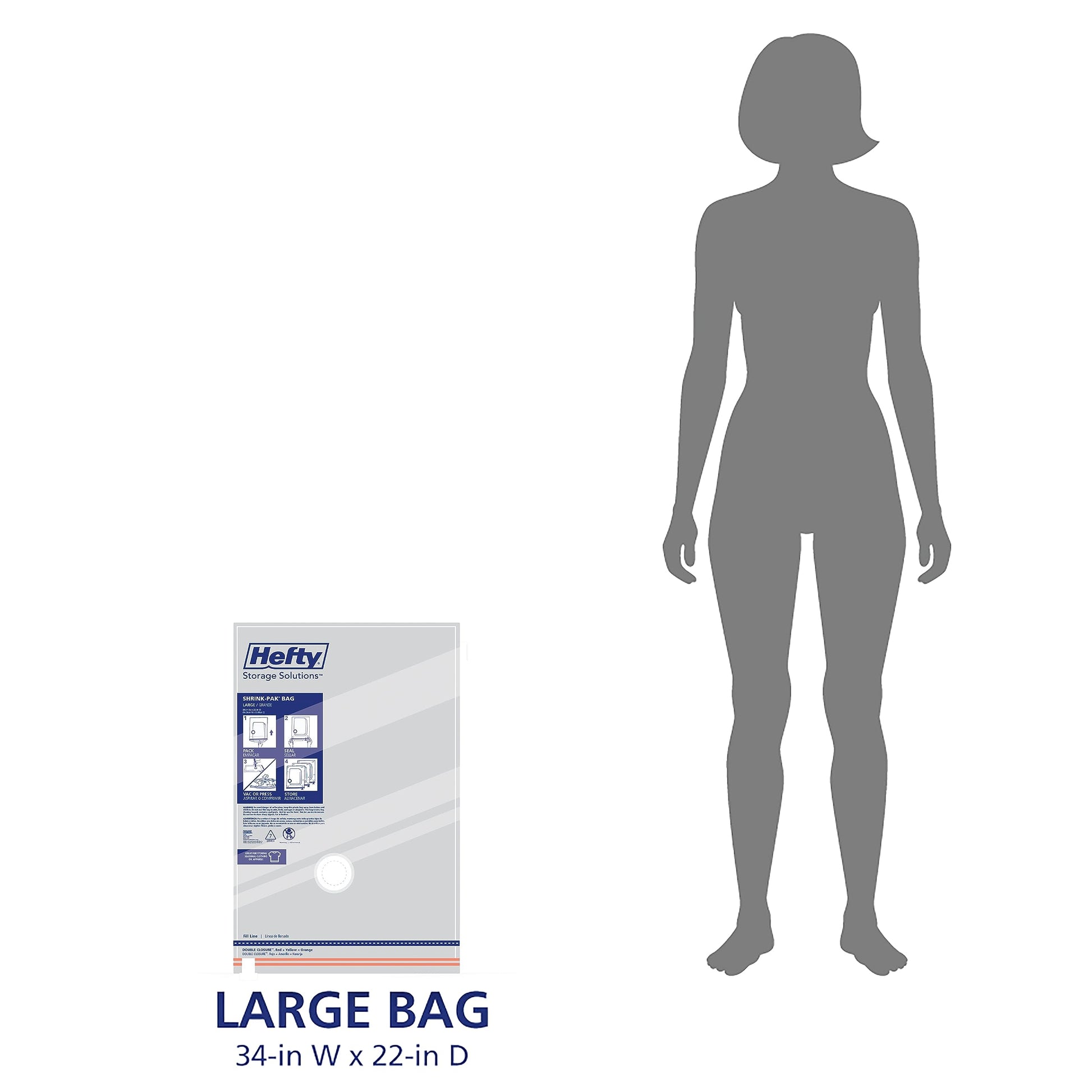 • Space Saving Storage Solution: Hefty SHRINK-PAK vacuum storage bags are the perfect storage solution for seasonal clothing and bedding, offering maximum shrinkage and effectively saving space in your closet, suitcase or under your bed