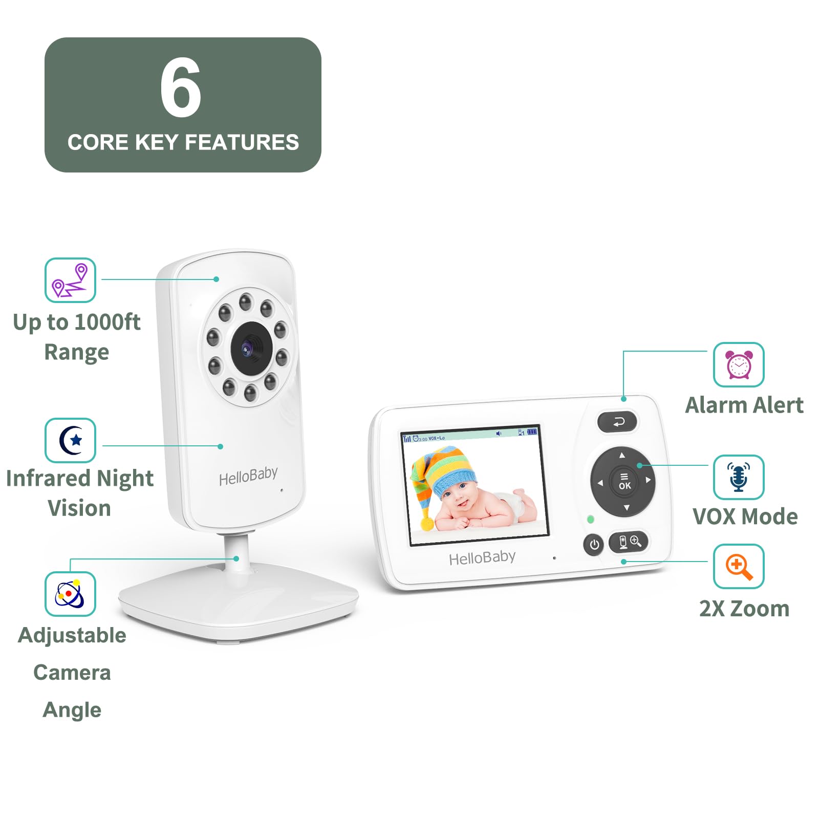 HelloBaby Monitor with Camera and Audio, 1000ft Long Range Video Monitor-No WiFi, Night Vision, VOX Mode-Power Saving, 2.4'' Portable Travel Screen, Safety Camera, for Baby/Pet, Plug & Play