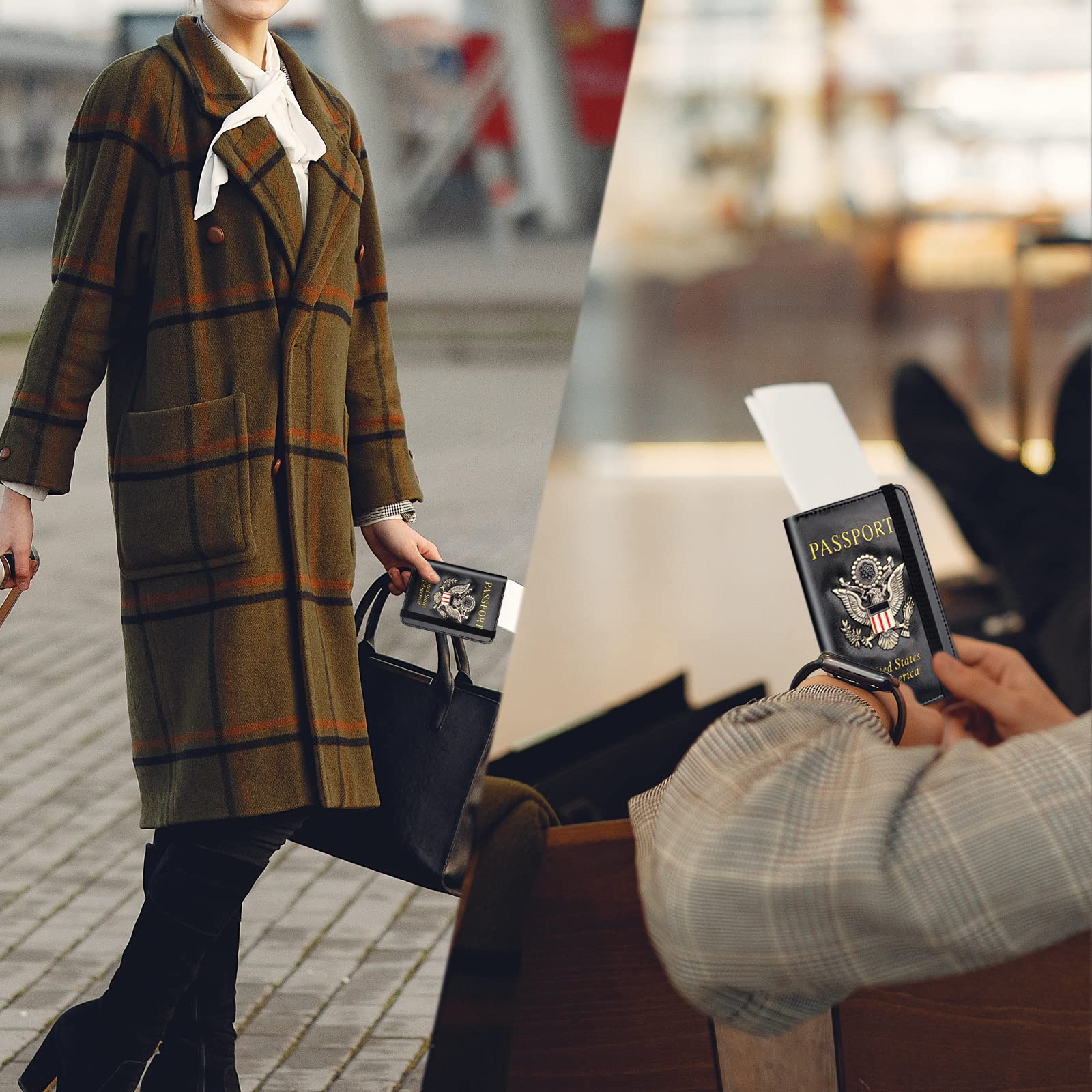 Herain Passport Holder Wallet Cover Case for Men Women Family, Metal US Badge Passport Book Holers with RFID Blocking, Travel Essentials Cruise Must Haves