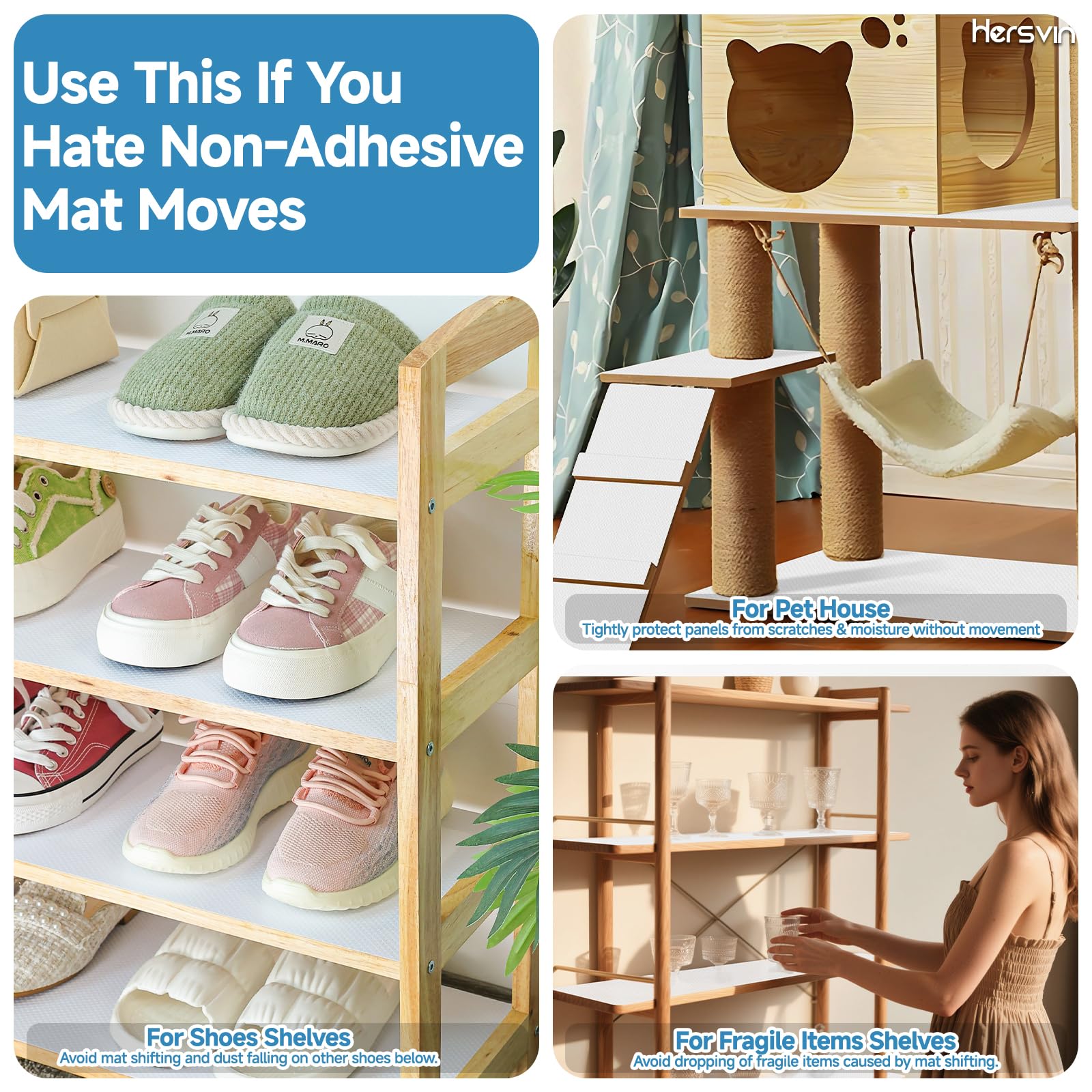 • WIDE APPLICATION: Various uses in kitchen cabinet, cupboard, drawer, shelves, fridge, bookshelf, shoe rack and for other housewares. Ideal for protecting surfaces of glass, wood, plastic, metal etc. Reduce frequency of wiping protected surfaces.