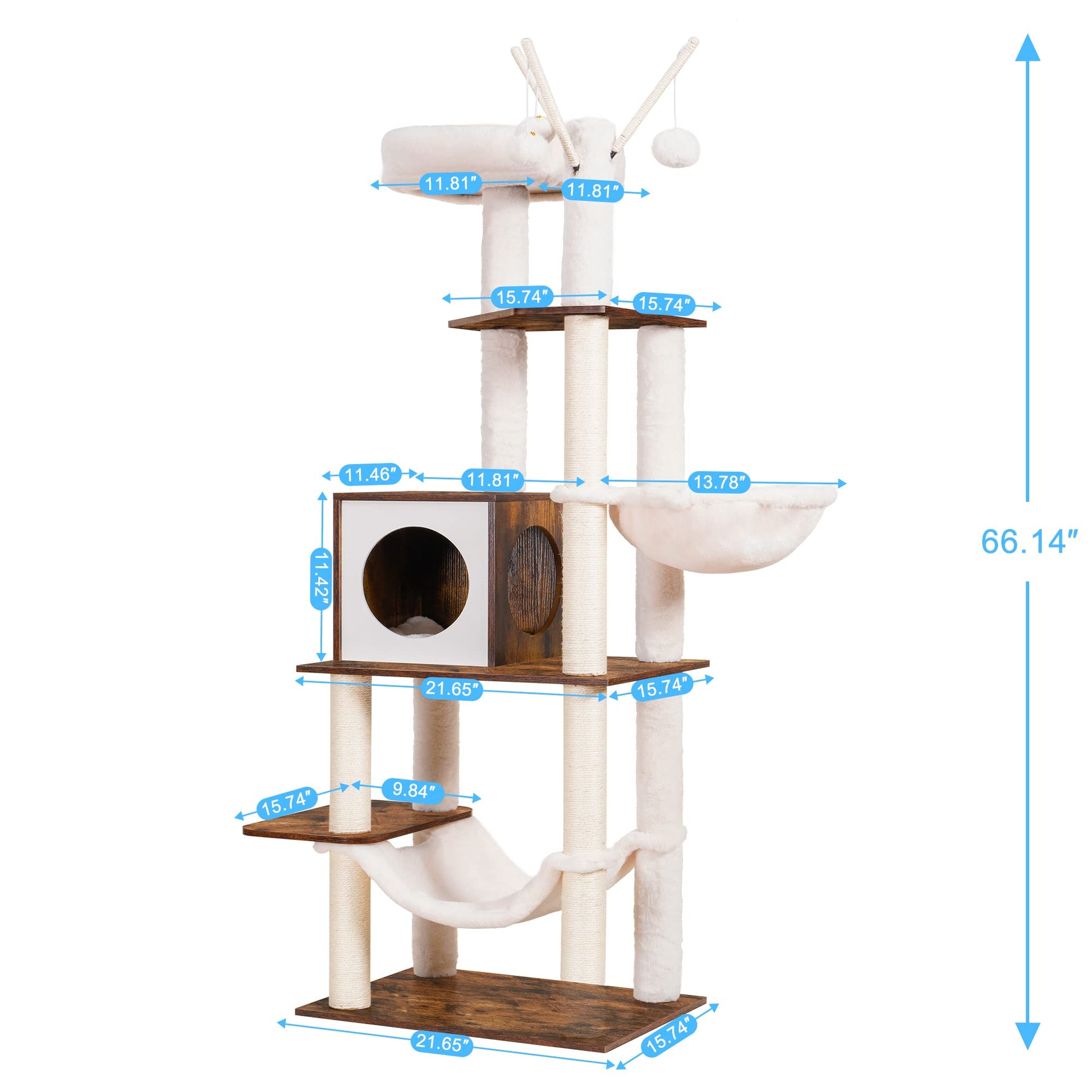 Hey-brother Wooden Cat Tree, 66.1“ Cat Furniture with Scratching Posts, Modern Cat Tower with hammocks, Toys, cat condo, Rustic Brown MPJ120SR