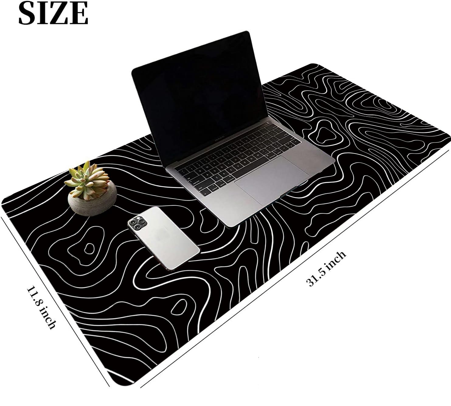 HGWALP Large Gaming TOPO Keyboard Mouse Pad Black Topographic Mouse Pad with Anti-Slip Rubber Base, Extended XXL Long Gaming Mousepad Big Mouse Pads for Desk,31.5 X 11.8 Inch