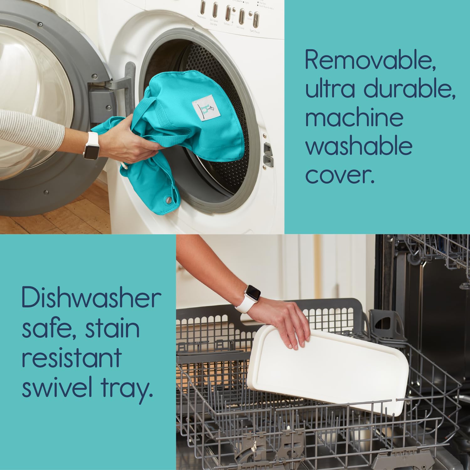 • MACHINE WASHABLE COVER | We all know that babies are messy eaters! Our portable booster seat is designed to effortlessly wipe clean, allowing more quality time with your precious tot. To assist with the inevitable mess, the fabric cover slides off the frame for machine washing - a must have for sanitizing and spaghetti stain removal.