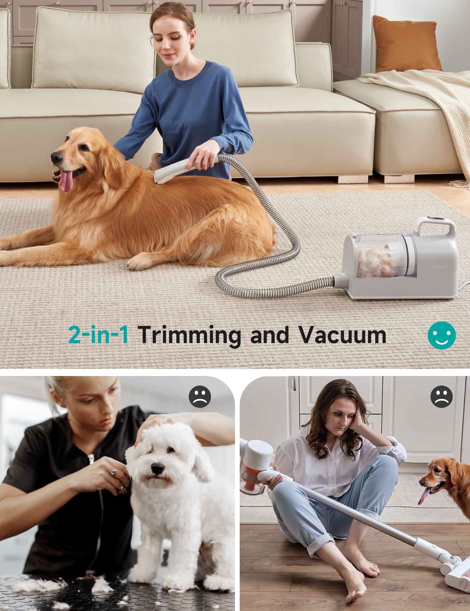 Hicozy S1+ Dog Grooming Vacuum, 12000Pa Minimum 50dB Quiet Dog Vacuum for Shedding Grooming with 2L Dust Cup, 6 Professional Pet Accessories with Clippers, Gray