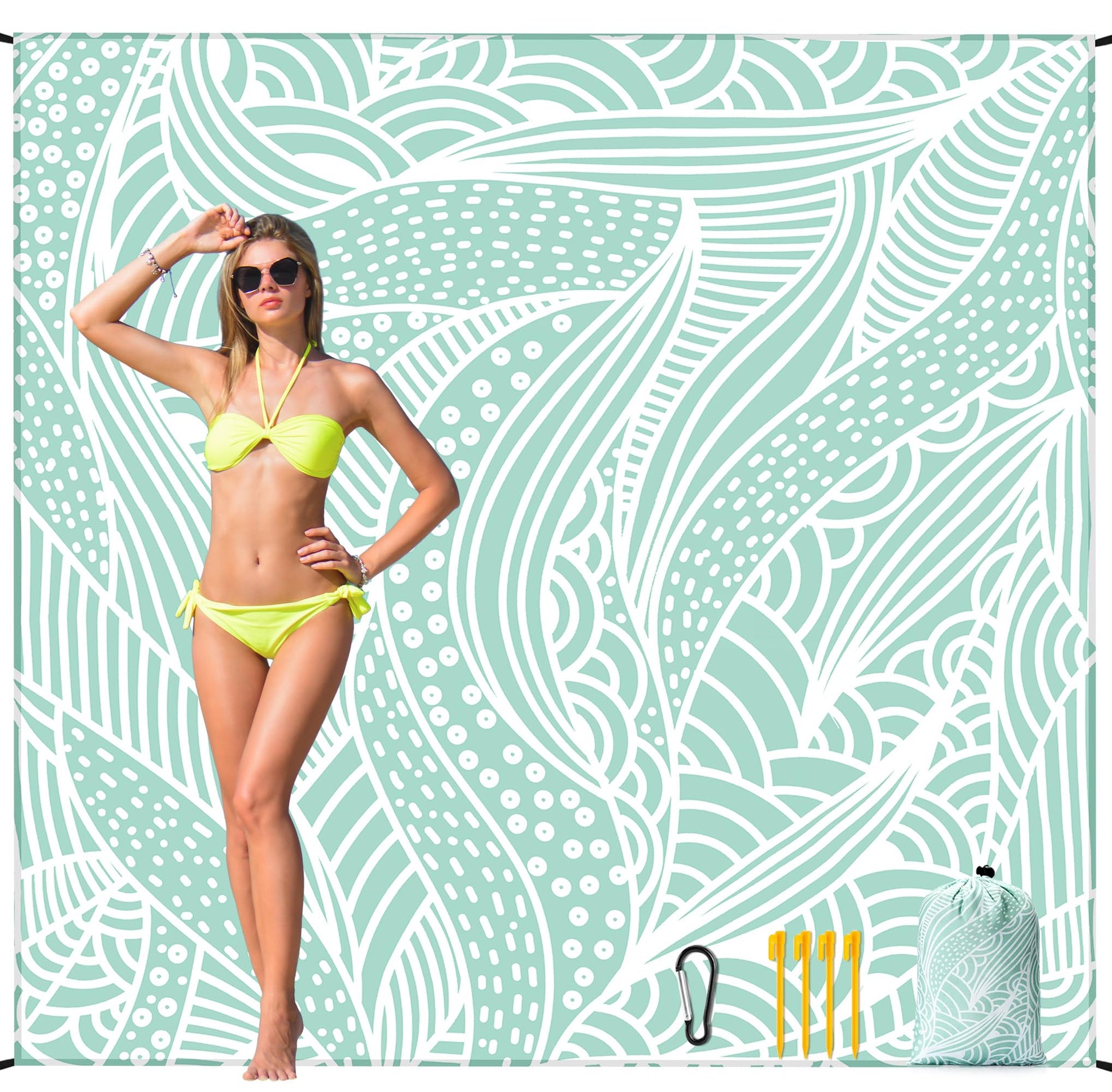• 🌊MULTIFUNCTIONAL BEACH ACCESSORIES-It can be used as a beach blanket while traveling, a toy mat for children at home, a picnic blanket, even ground cover, etc. Our sand-free beach blanket designed with portability is perfect for all occasions.Leave it in your trunk after a quick-wipe clean instead of cleaning and always have it handy. Tips: It is allowed to be machine washed but with no bleach or iron.