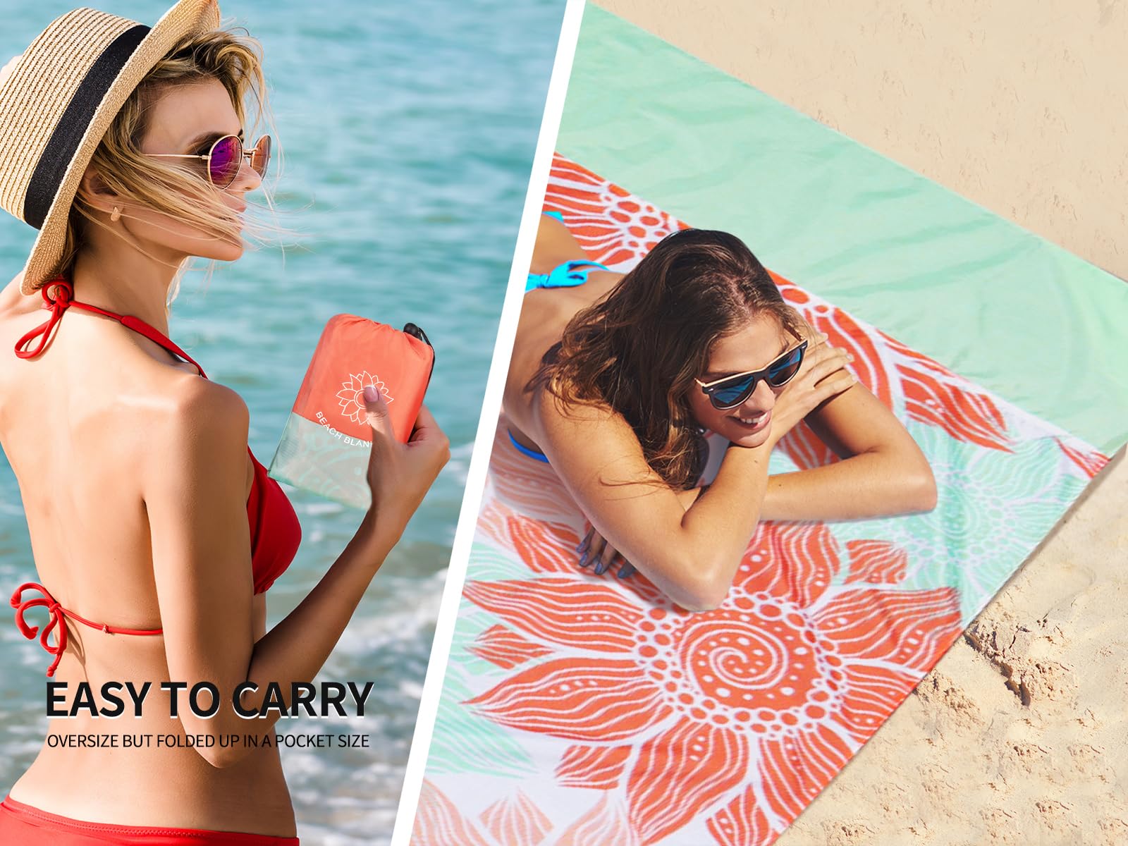 • 🌴【Lightweight Beach Items】79'*83' beach blanket oversized, weighted 0.71 lbs, fit 1-3 adults, and they can be easily folded into a 5.1'×7.5' carry bag.