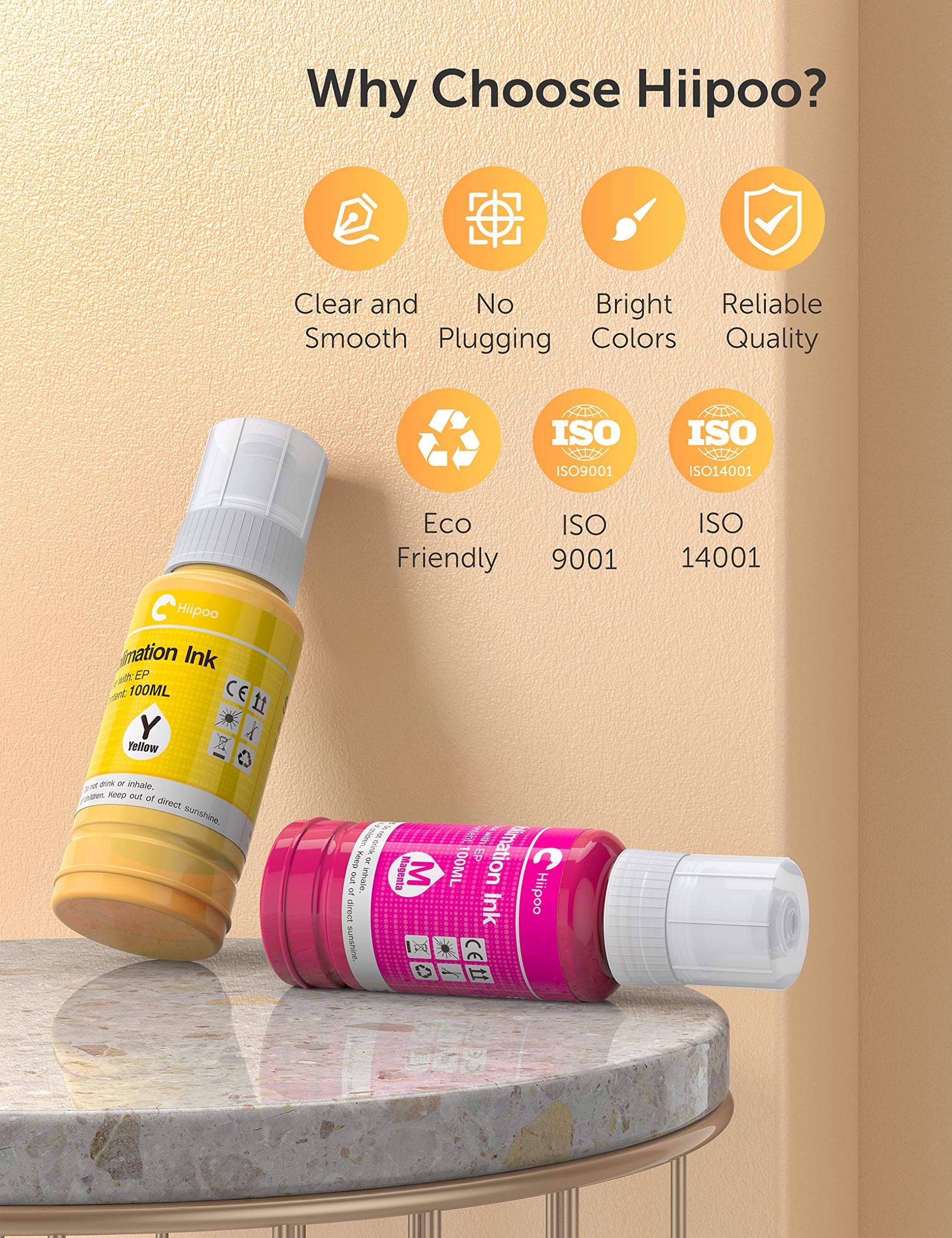 • Specifically Designed Compatible for Ecotank Inkjet Printer: Hiipoo sublimation ink Compatible for EcoTank Supertank ET-8500 ET-8550 Printers.