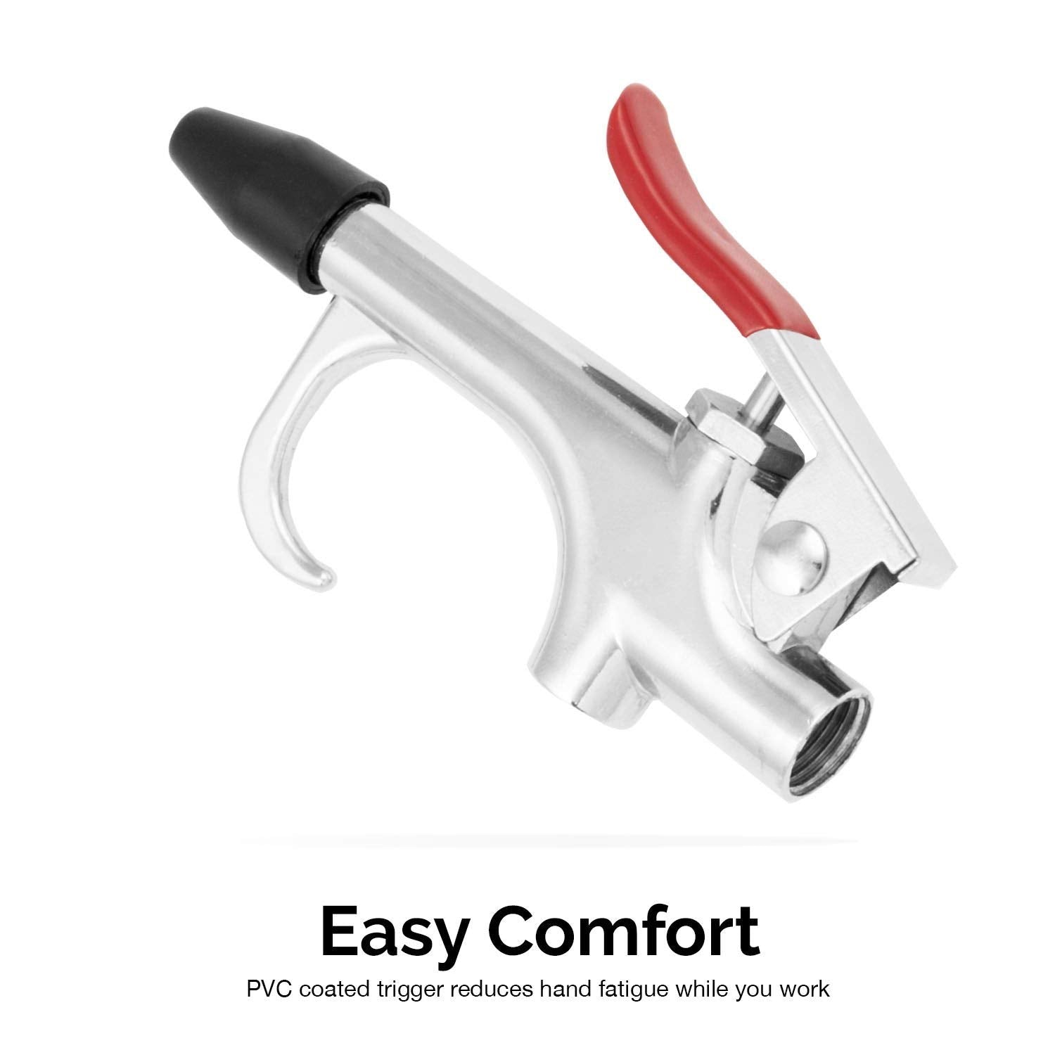 • [FEATURES]: Air blow gun assembly connects to an air compressor with a standard NPT ¼' tempered thread and features an attachable rubber tip to protect surfaces from scratching or damage.