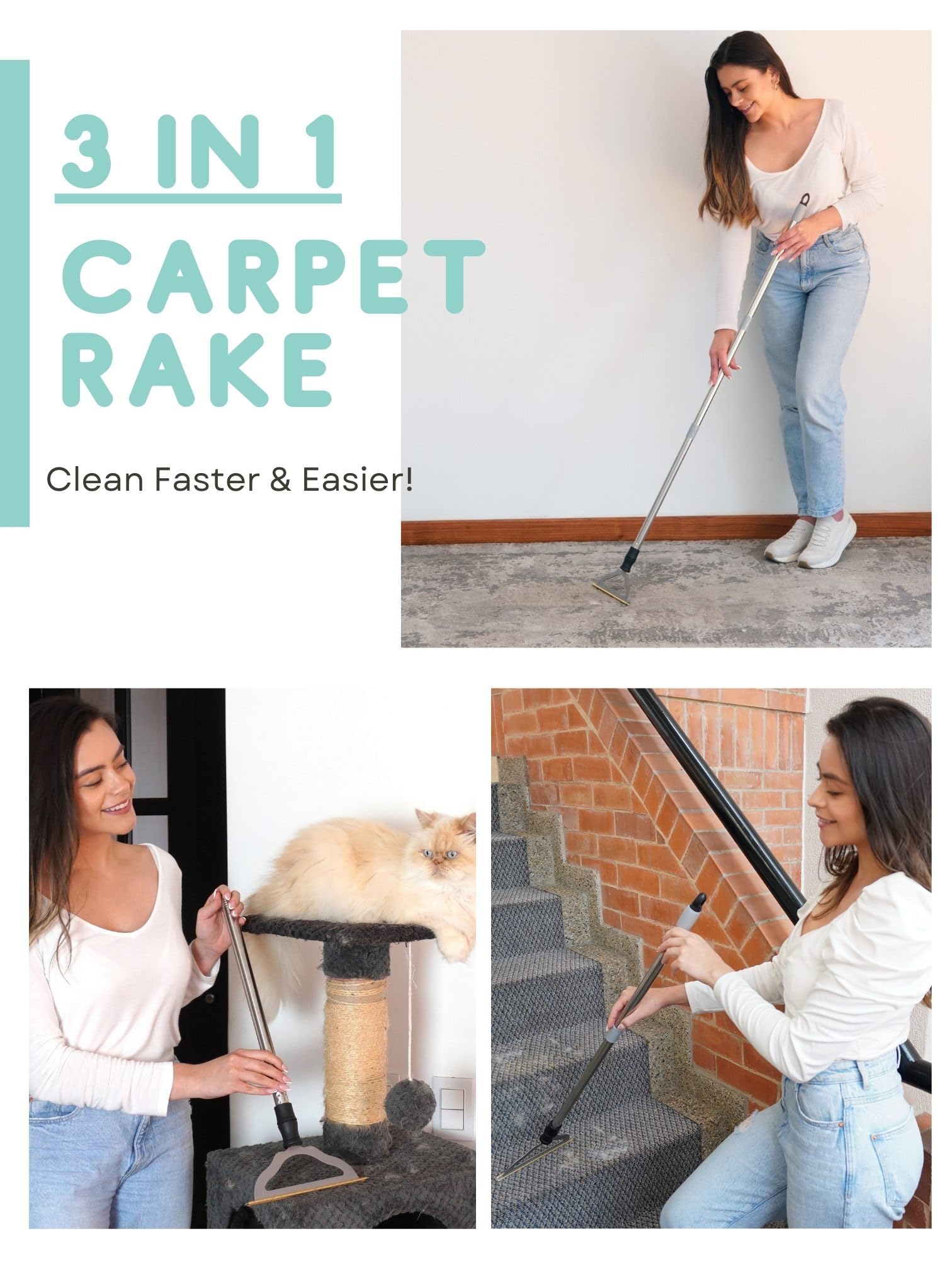 • Durable, Sturdy, Reliable High Quality You Can Trust — This long handle carpet rake for hair removal is designed with a solid structure, made of high-quality metal for rake teeth and thick stainless-steel for handle(we updated to a thicker, more durable handle), for long lasting and frequent use.
