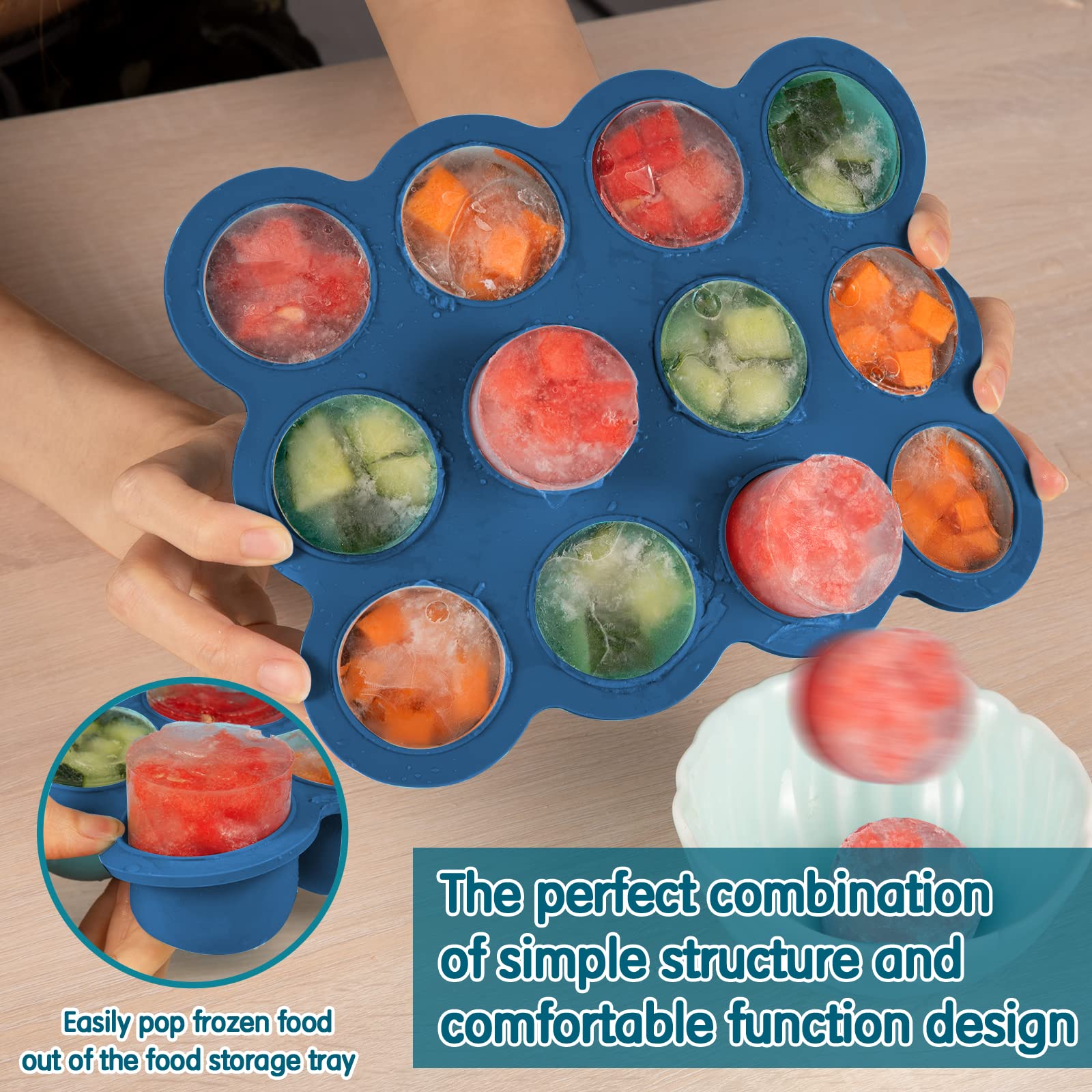 HIWOOD Baby Food Storage - 12 x 1.5OZ Silicone Freezer Tray with Lid, Containers for Homemade Purees - Midnight Blue
