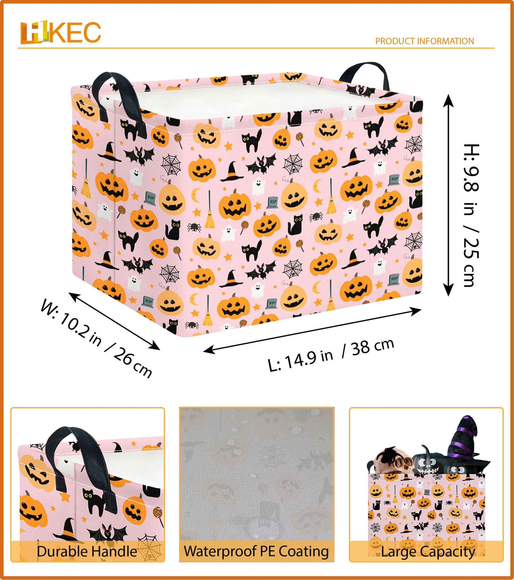 HKEC Rectangle Storage Basket with Handles,Collapsible Storage Bin,Books Box,Gift Basket(Halloween Cat Basket)