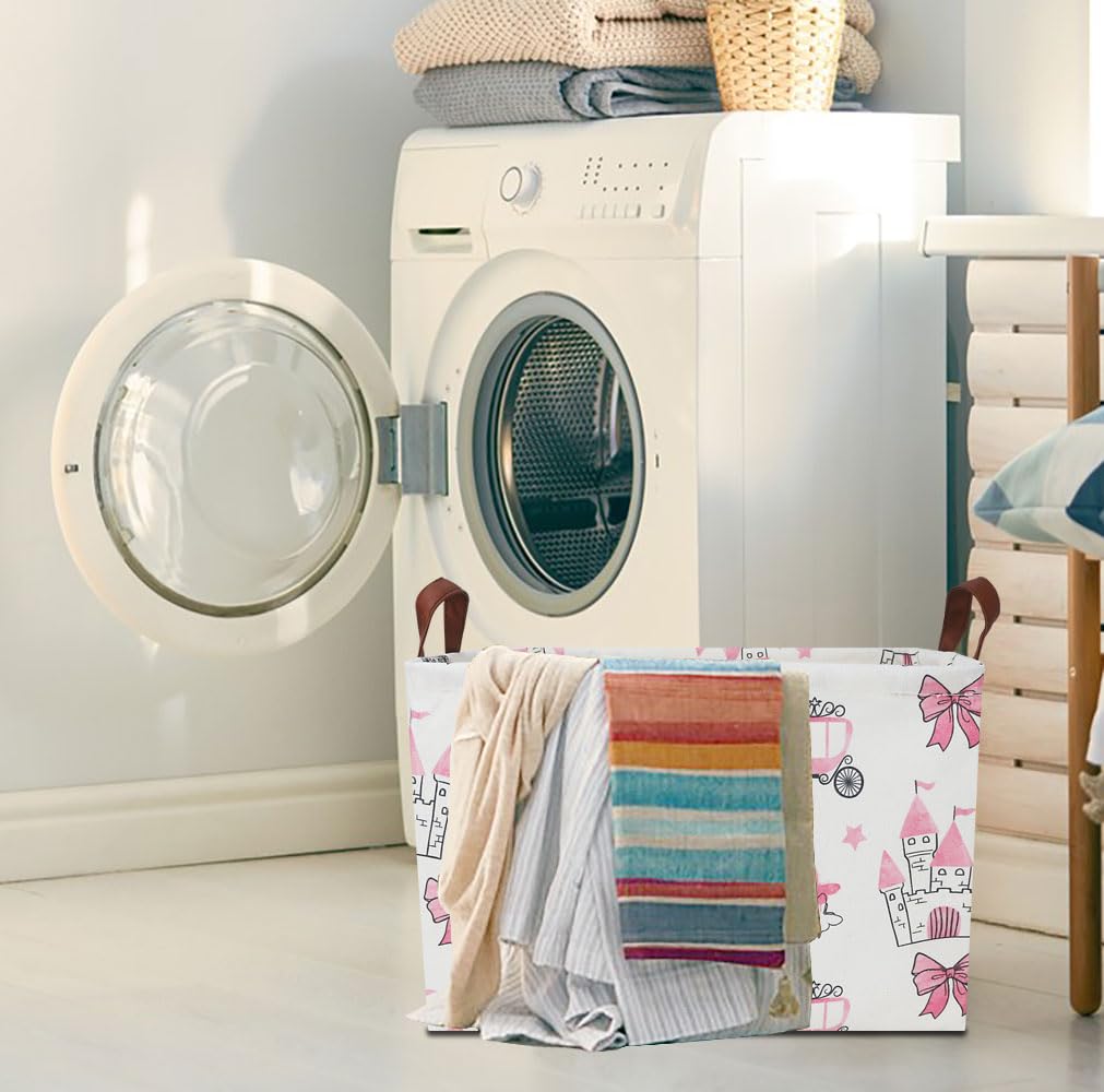 • FOLDABLE BASKET SIZE: 14.9”L×10.2”W×9.8”H inches. Save on space when not in use and fold flat for easy storage, Perfect for baby shower gifts, toys, books, clothes, games, baby doll accessories, or match-box cars.