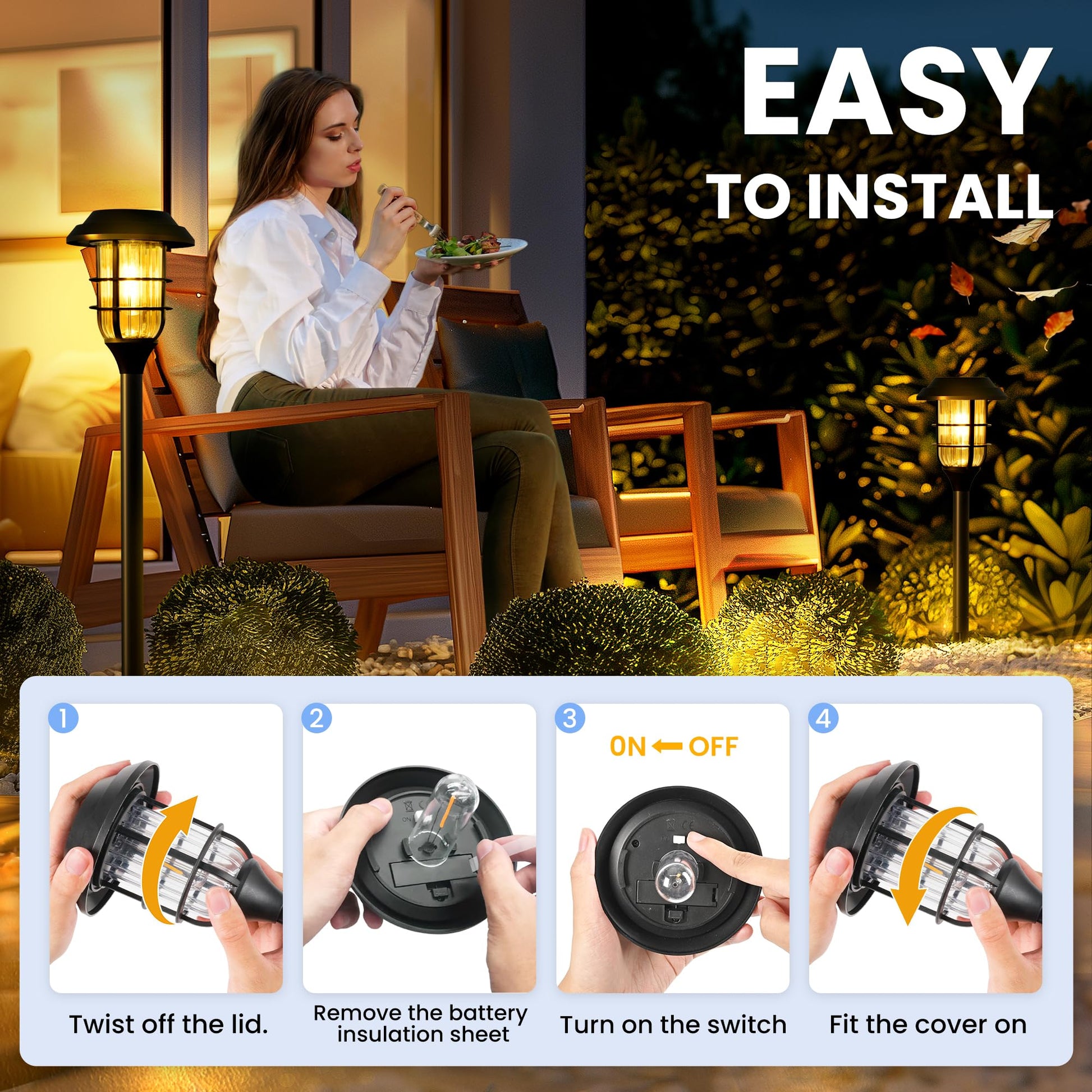 • 【Bright Solar Lights Outdoor】: Our solar pathway lights outdoor feature advanced tungsten filament bulbs, delivering brighter illumination and creating a cozy, romantic atmosphere for your garden,yard,patio,pathway. Perfect for enhancing your outdoor decor with a touch of elegance.