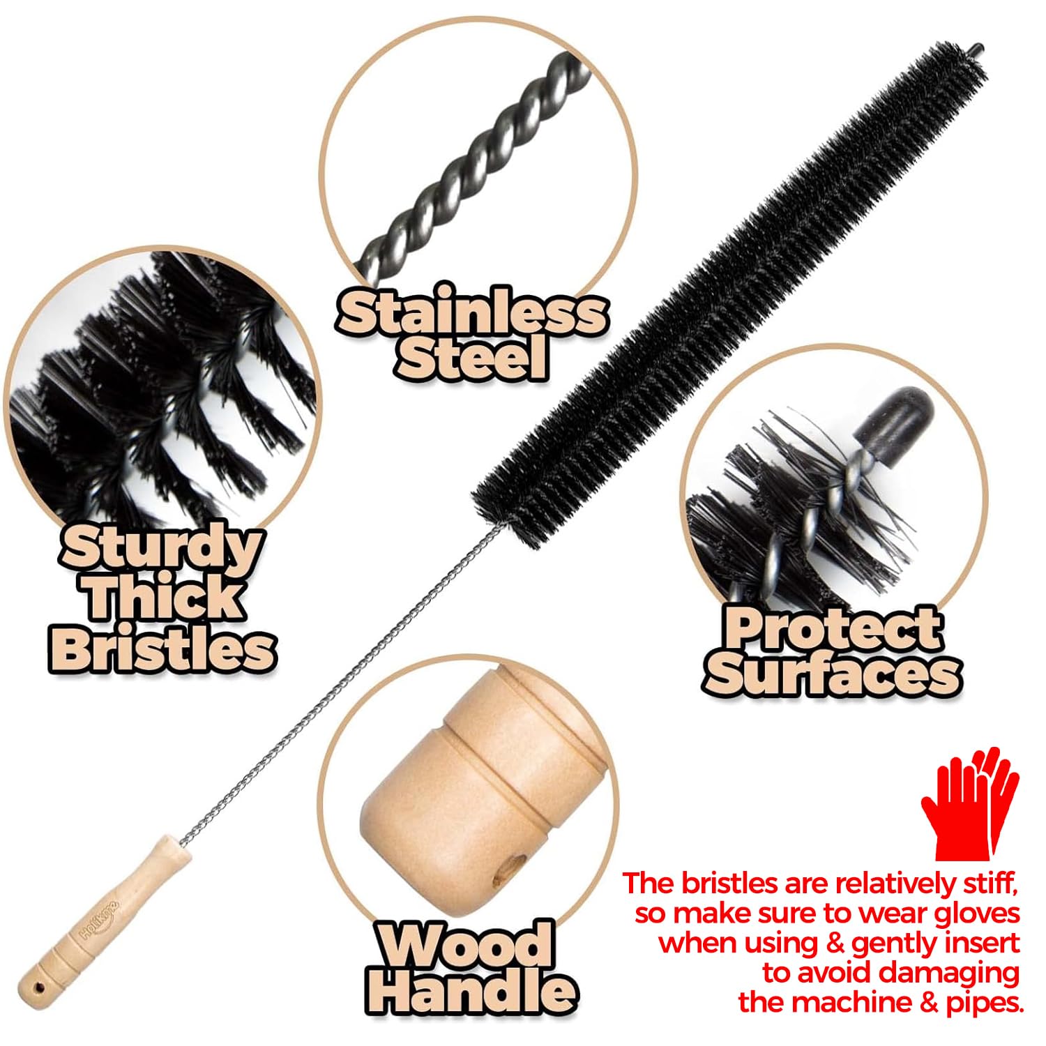 • 304 Stainless Steel & Solid Wood Handle: Anti-rust steel wire flexes around bends (up to 90°), thick bristles scrape stubborn buildup, Ergonomic wooden grip for comfortable control