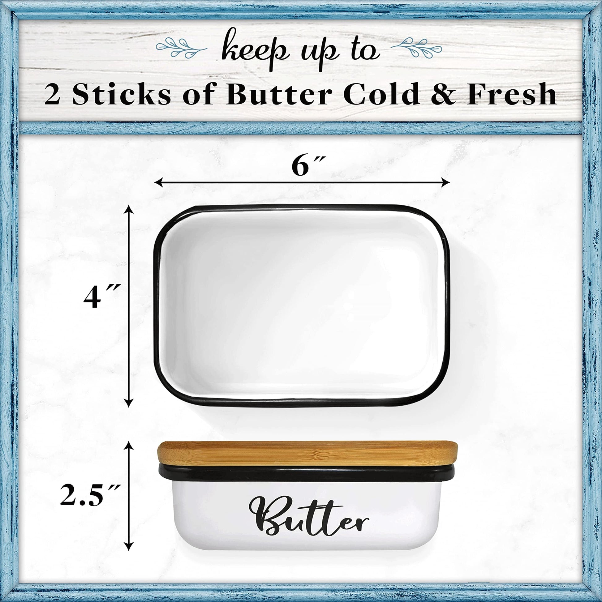 • Safely Sealed: Keep your butter fresh on your counter or in the refrigerator by shielding it with the durable wood lid. Oh, and did we mention this butter storage dish can hold up to 2 sticks of butter?