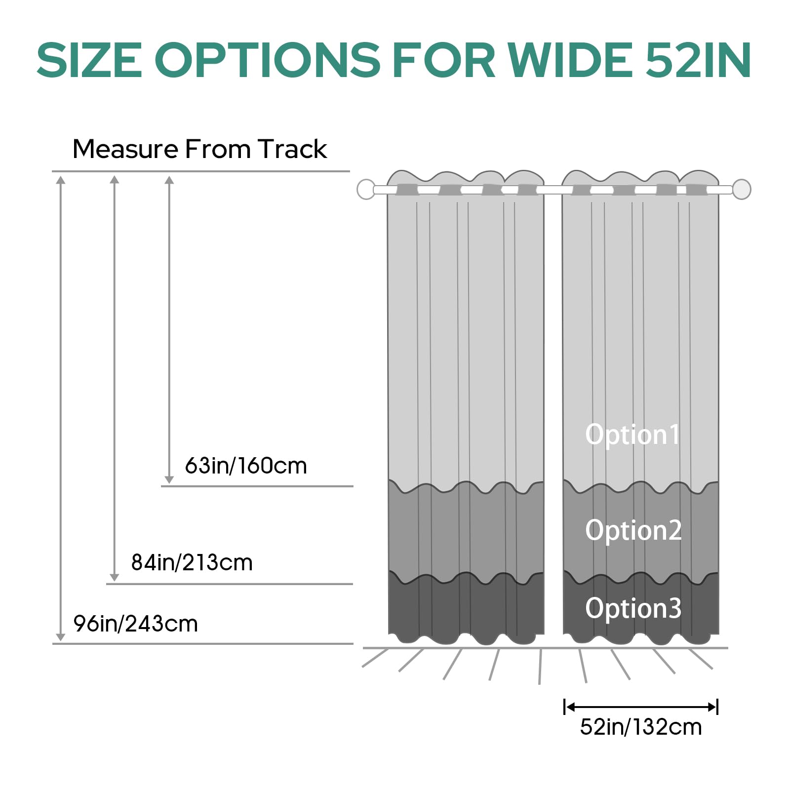 • ★PACKAGE MADE: Your package includes two gradient curtain panels. Each panel measures 52 inches in width, a total width of 104 inches. 8 silvery grommets (1.6-inch inner diameter) of each panel make the blackout curtains easy to install and slide.