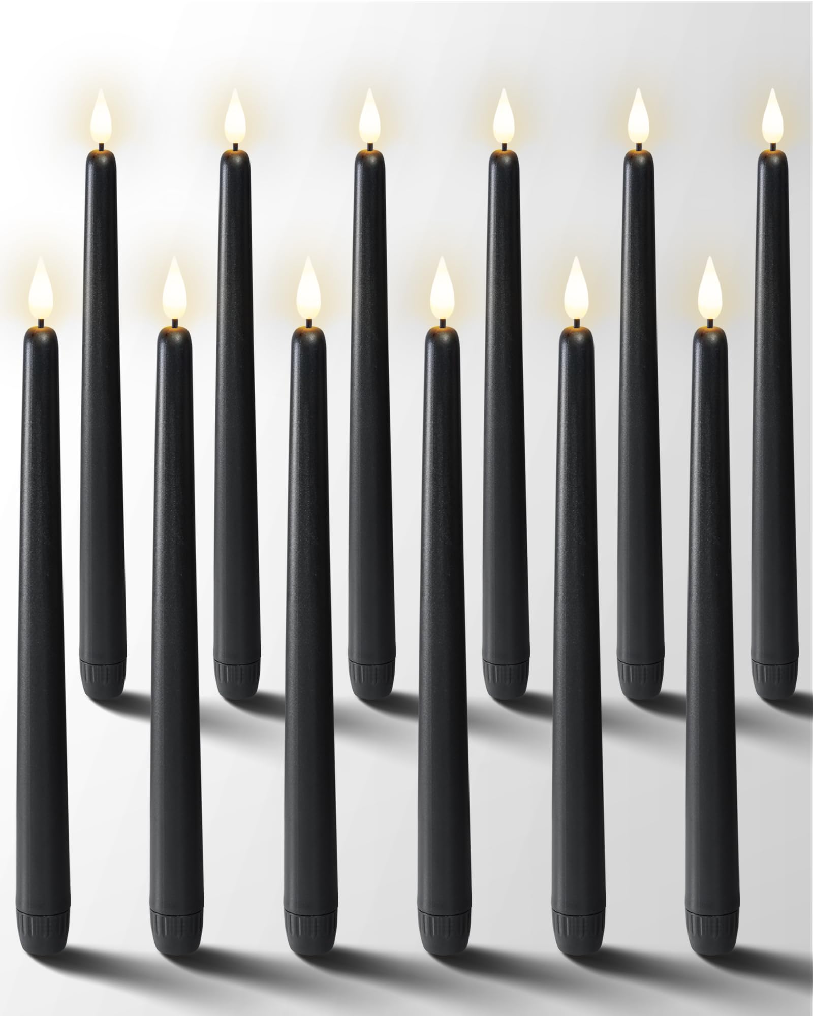 • Safe and Elegant: our led taper candles are made of quality matte texture black plastic, more like wax, and not easily broken. No matter using these flameless candlesticks for Halloween decorations, daily ornament, or magic scene props, they could show a well-designed appearance whether viewed from a distance or close up.