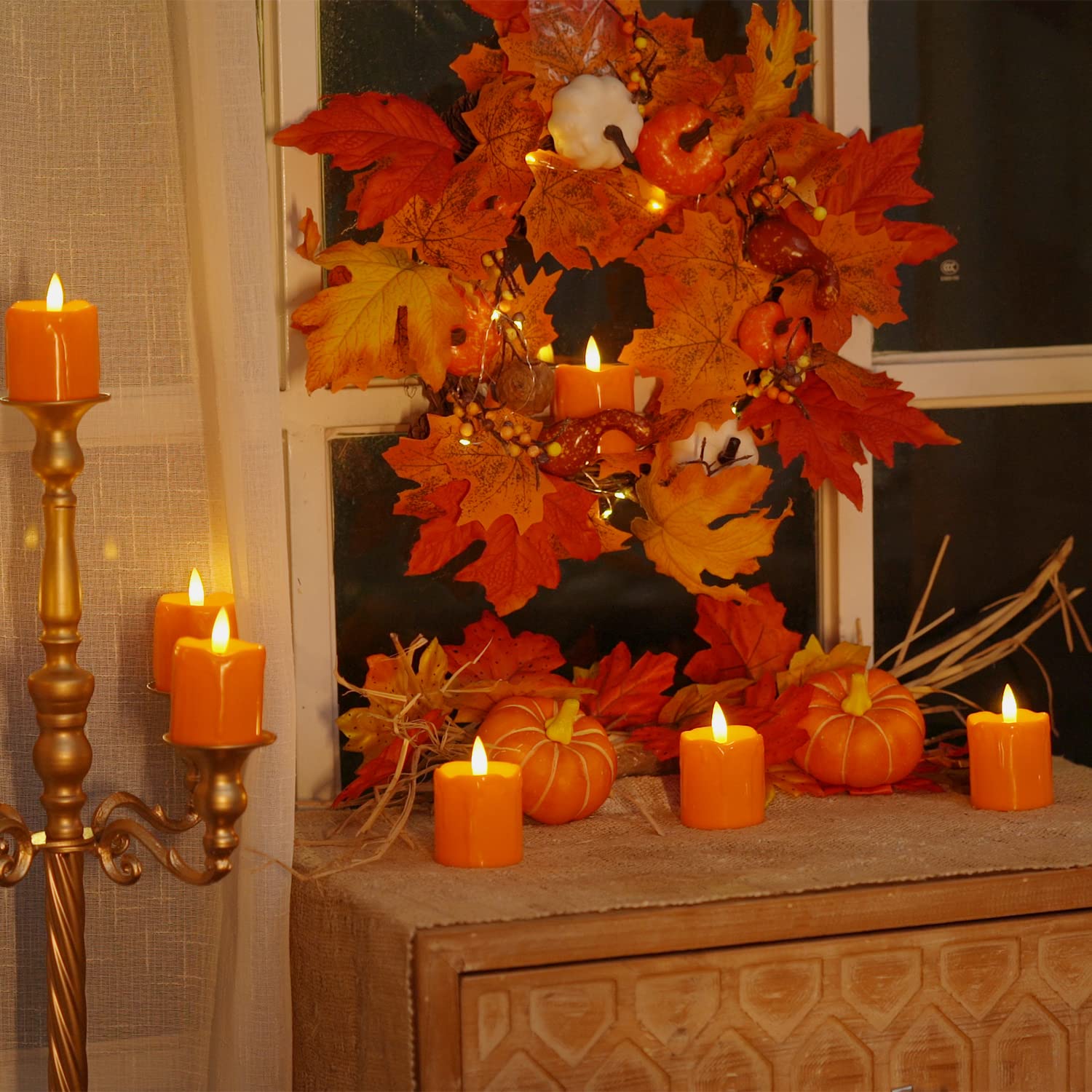 Homemory 2" x 2" Orange Flameless Votive Candles with Timer, Realistic Battery Operated Candles, 6Pack Black Wick Fall Candle for Pumpkin Lanterns, Halloween Decorations