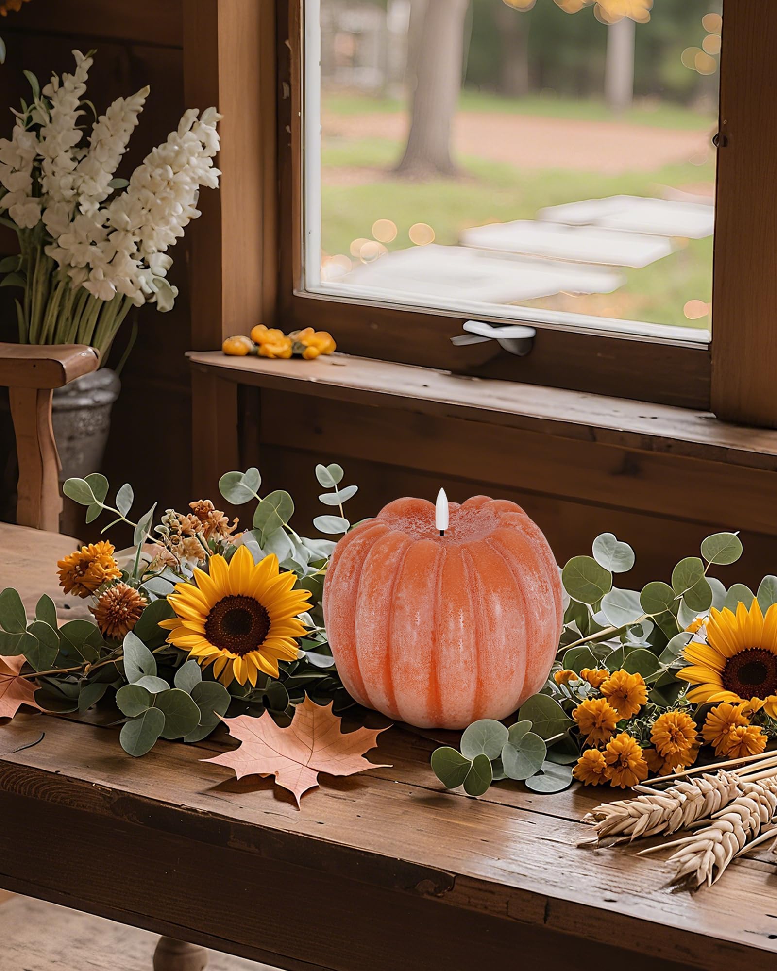 • Realistic 3D Flame & Festive Pumpkin Design Crafted from wax for an authentic pumpkin appearance, this flameless led candle features a dynamic 3D flame effect that mimics flickering candlelight. Perfect for tabletops, mantels, or seasonal displays, it creates a cozy ambiance without open flames or cords.