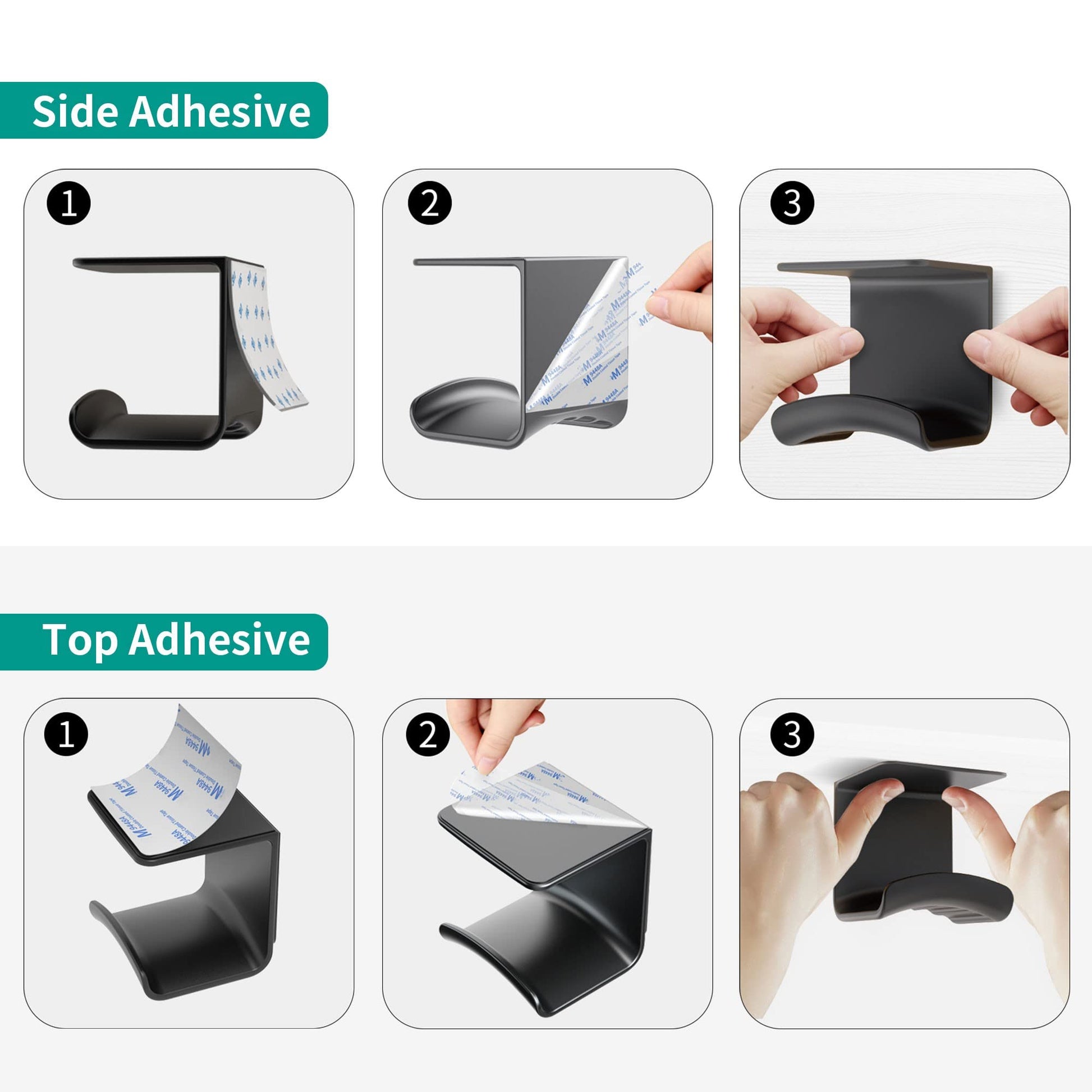 • Headphone Hook Under Desk & Side of Your Desk: It is not only applicable to the side of the table, but also to the bottom of the table. We have two installation methods. You can use the attached 3M adhesive to paste it according to your needs