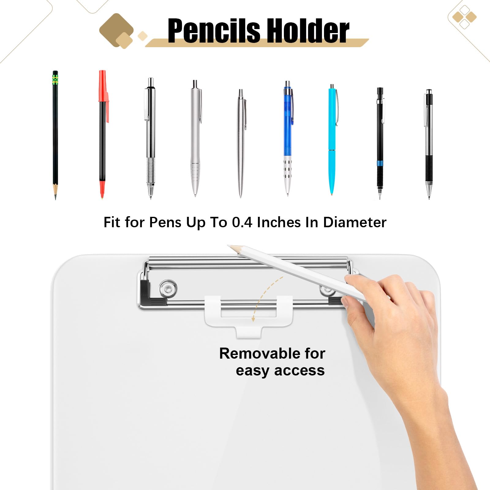 • Dimension:The size of each clipboard is 12.5 X 9 X 0.1 in (315*228*25mm) , With low profile Clip and pen holder. 0.1Inch thickness offer a enough strength