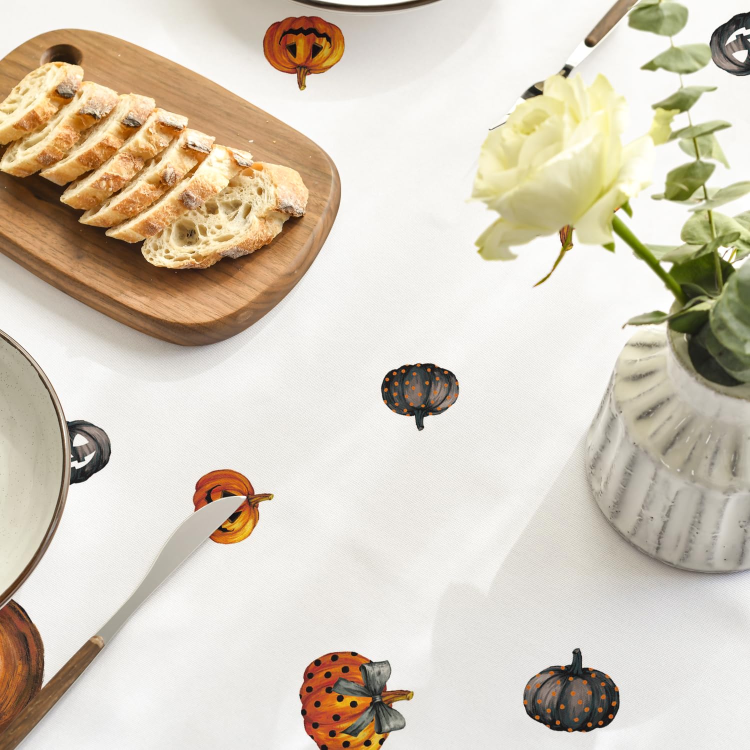 Horaldaily Halloween Tablecloth 60x84 Inch Rectangular, Ghost Pumpkin Washable Table Cover for Party Picnic Dinner Decor