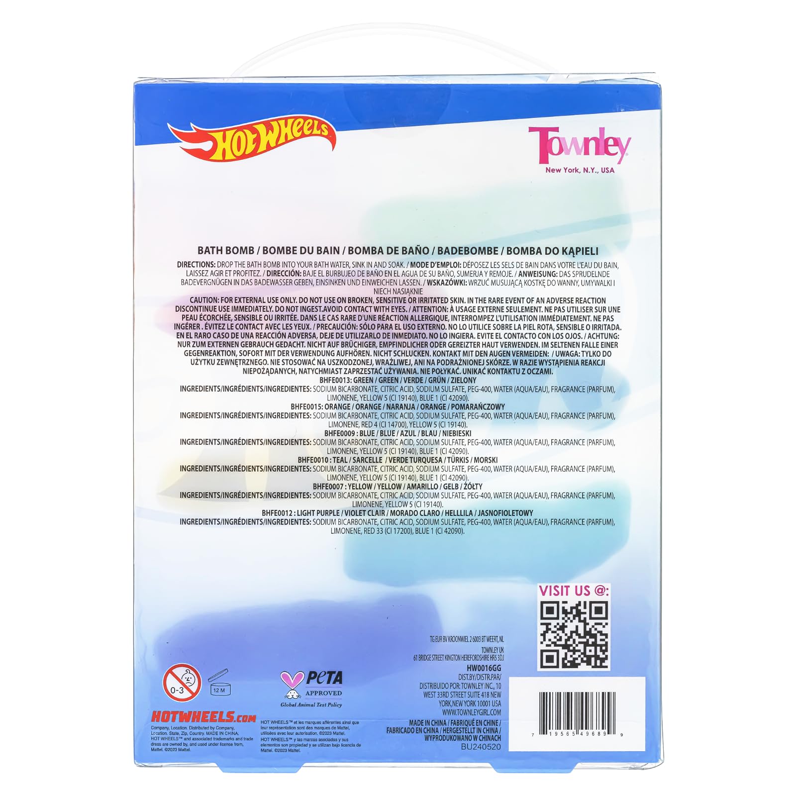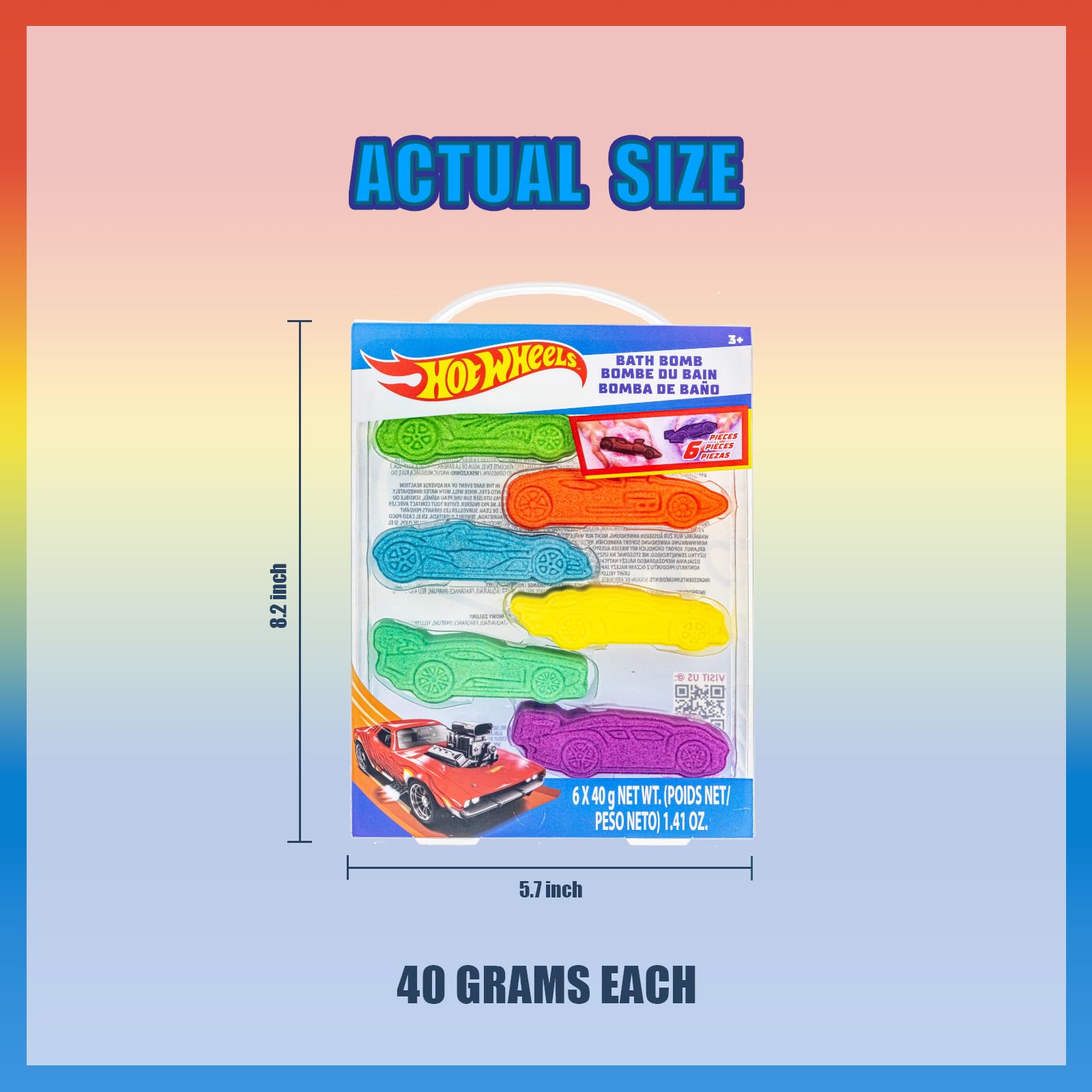 • SET INCLUDES: 6 40g bubblegum scented, molded bath bombs. Each bath bomb is molded into different Hot Wheels cars.