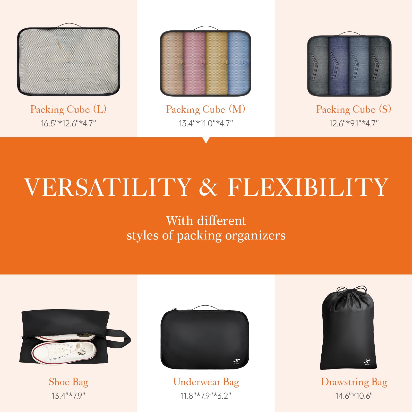 • NEVER FORGET THE ESSENTIALS: Before using these packing cubes for carry-on suitcases, have you often forgotten one or two of your essentials with you when going out? Now it's time to say goodbye to carelessness! Let HOTOR packing cubes help you to sort out all the travel must-haves and contain them in order!