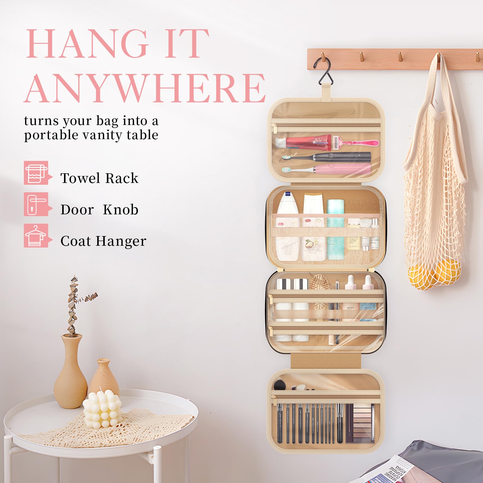 • STURDY HOOK DESIGN: Featuring a premium metal hook, the HOTOR cosmetic travel bag offers the convenience of hanging from a towel rack, coat hook, or any available space. This not only showcases your toiletries and cosmetics for easy accessibility but also saves valuable bathroom counter space. The sturdy metal hook is designed with a retractable feature, allowing it to be neatly stowed away when not in use.