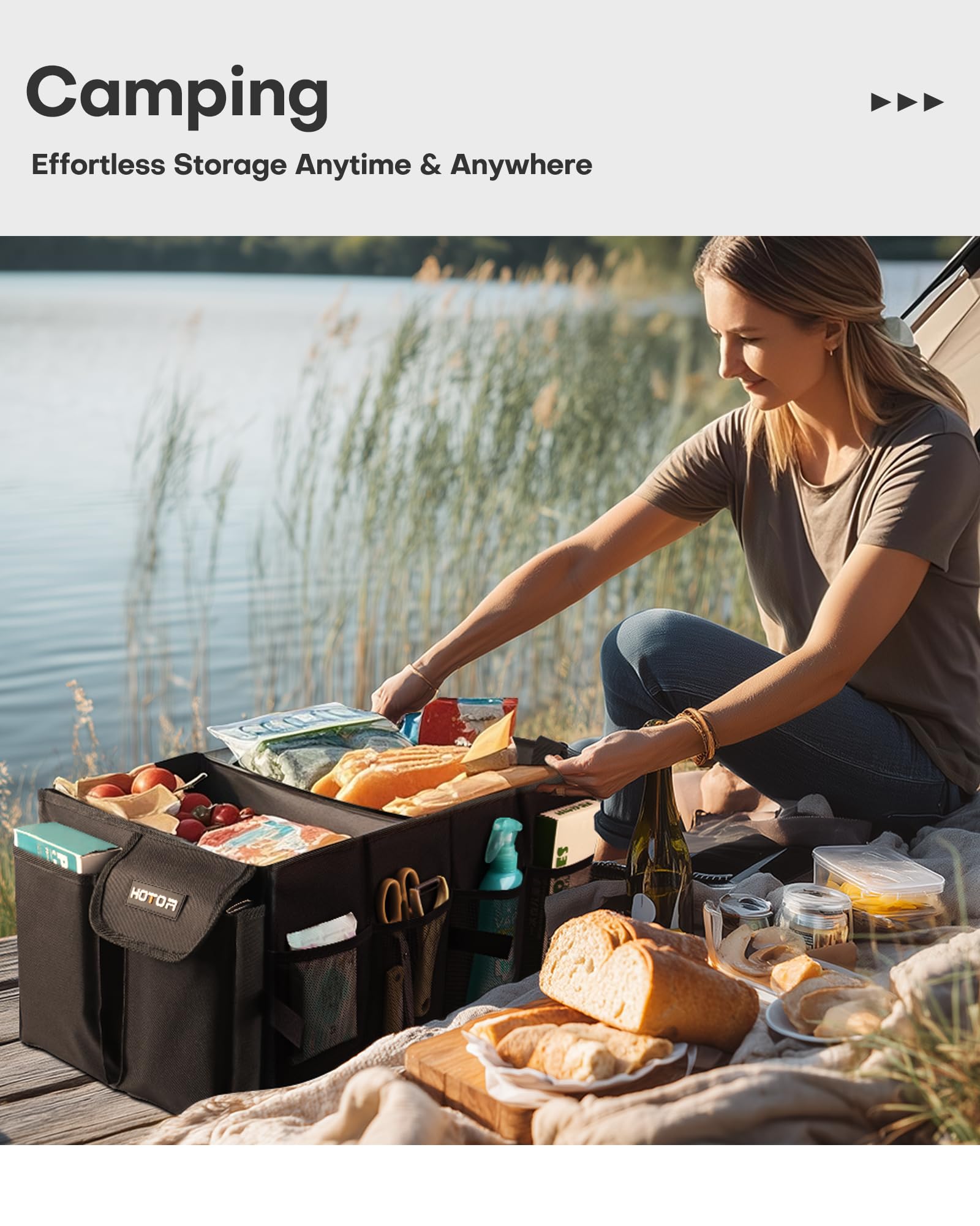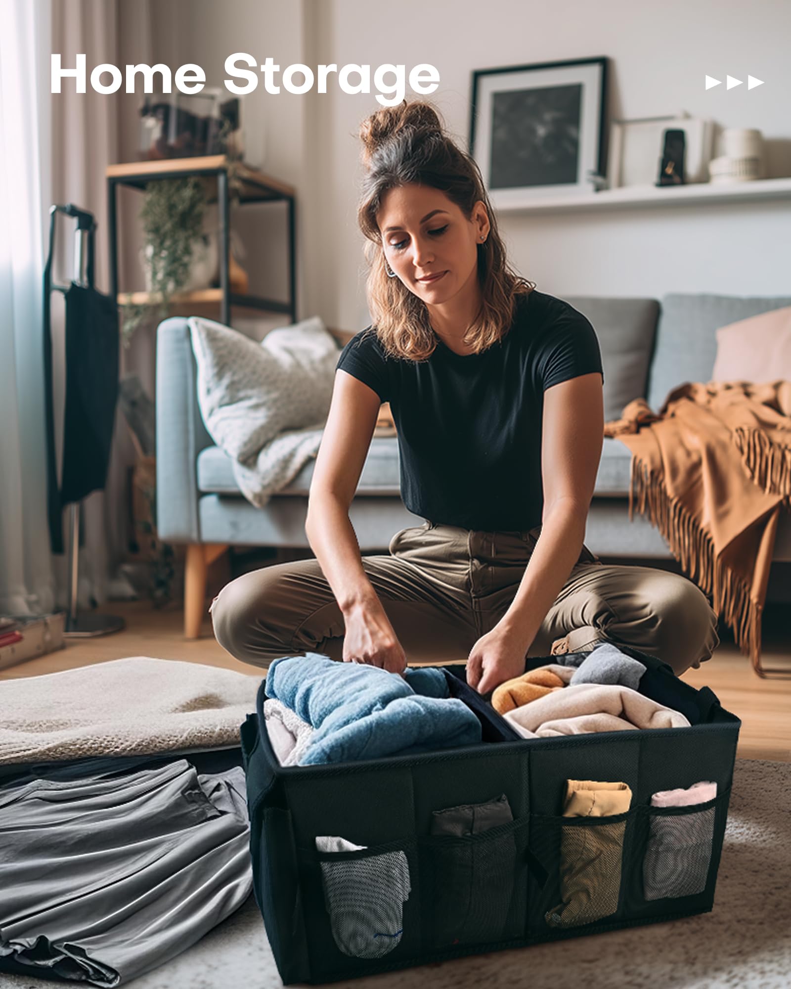 • PORTABLE & SPACE-SAVING: When not in use, simply fold the SUV trunk organizer flat with the Velcro strips. The collapsible design is perfect for freeing up trunk space or storing the organizer neatly at home. An essential item for tidy travels.