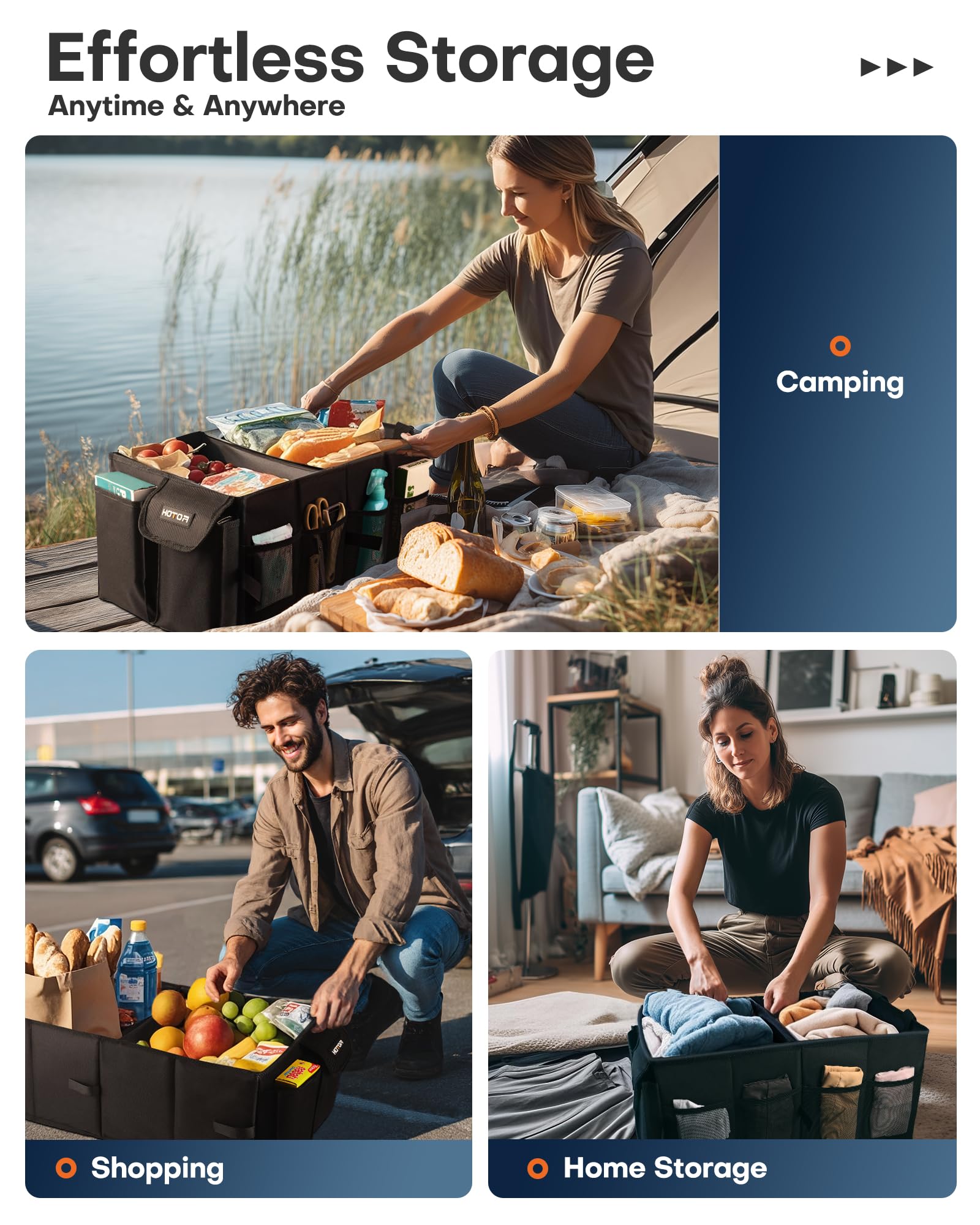 • FLEXIBLE CONFIGURATION: Adjustable side Velcro strips allow you to fold the car storgae organizer fully or halfway to fit your storage needs. Just put it in the trunk, backseat, front seat, or wherever you want in the car.