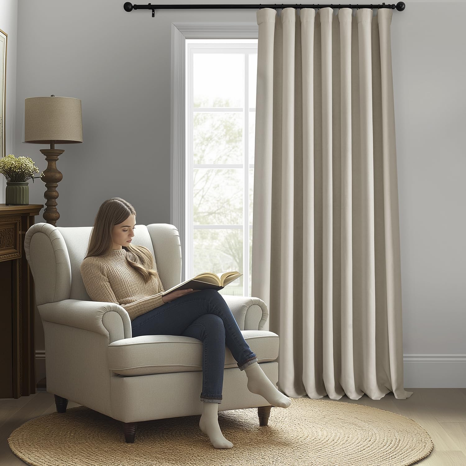 HPD Half Price Drapes - Faux Linen Curtains for Living Room (1 Panel) - 100W X 84L - Extra Wide Textured Room Darkening Curtains for Bedroom 84 Inches Long - Drapes for Home Decor, Birch