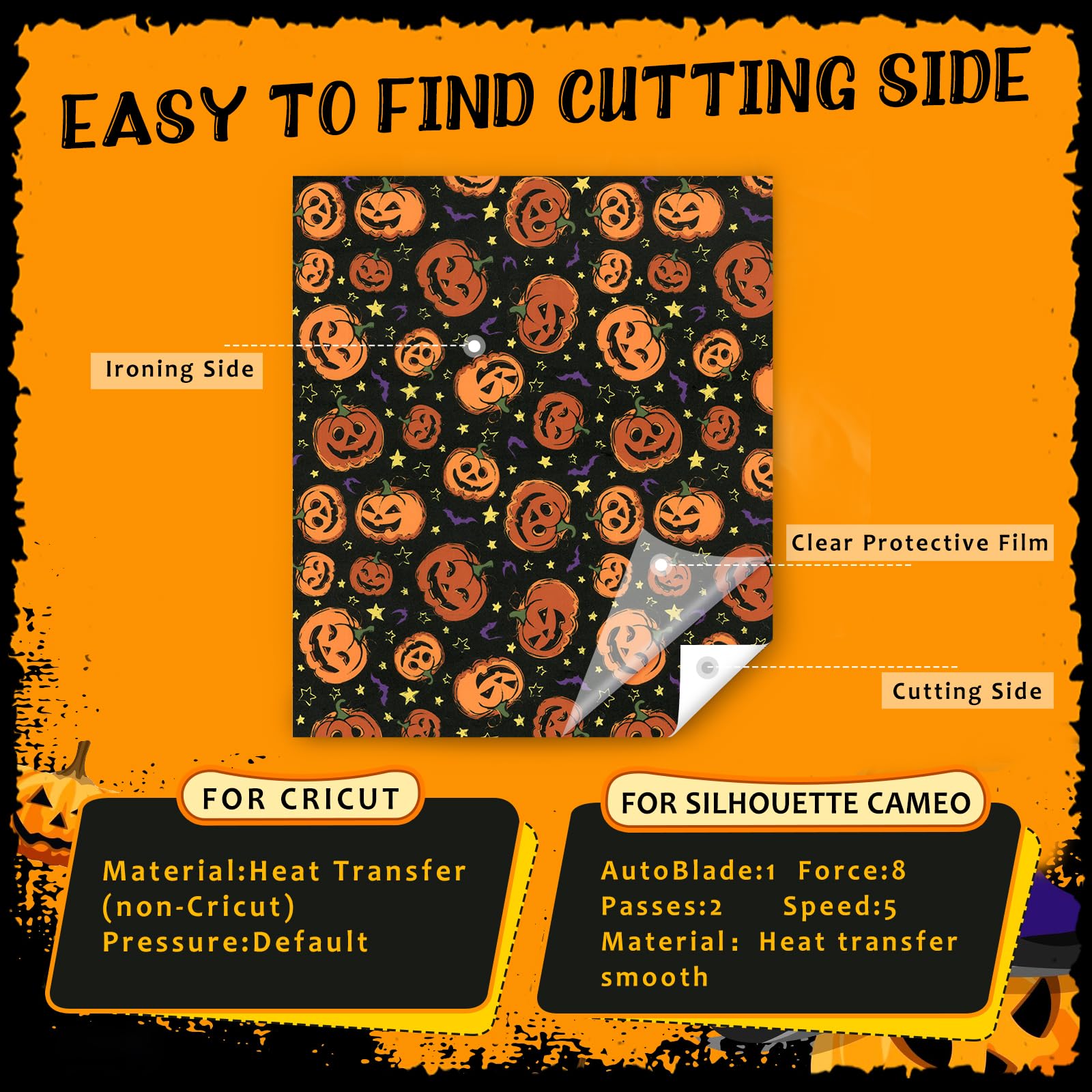 HTVSTD Halloween Pumpkin HTV Vinyl - 12 Sheets (12'' x 10'') Pumpkin HTV Heat Transfer Vinyl Patterned Iron On Vinyl for T-Shirts
